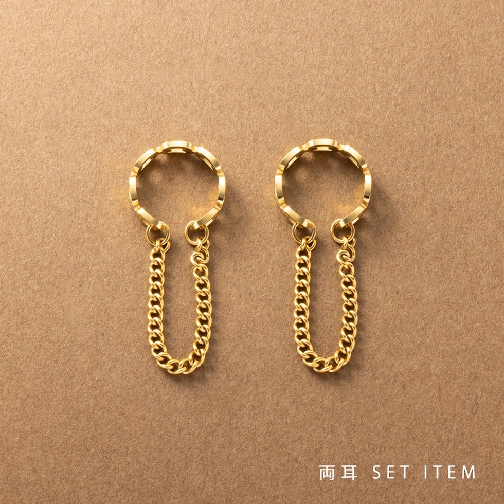 オーバル×ハングチェーンを組み合わせたイヤーカフ。レイヤードのようなデザインと揺れる華奢なチェーンがこなれ感のあるアイテム。両耳用なのも嬉しいポイントです◎錆びにくく傷に強いステンレス製で、長時間の着用も安心の低アレルギー素材です。