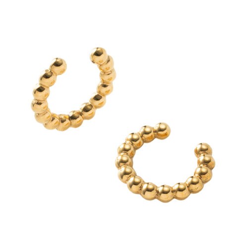小さめのメタルボールが連なった両耳用イヤーカフ。シンプルながらも耳元を大人モダンな印象に仕上げてくれる。華奢なデザインだからデイリーにも取り入れやすく、ピアスやイヤリングとの重ね着けも楽しめるアイテムです。