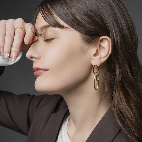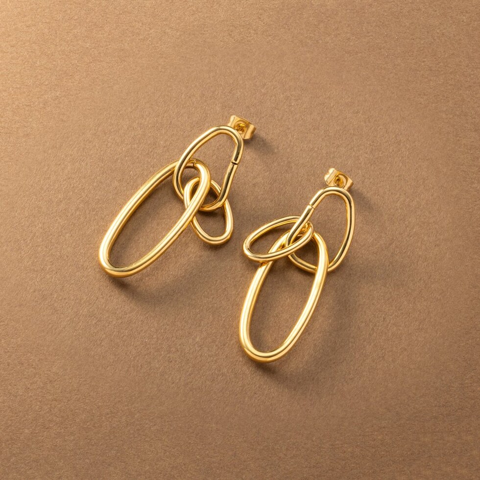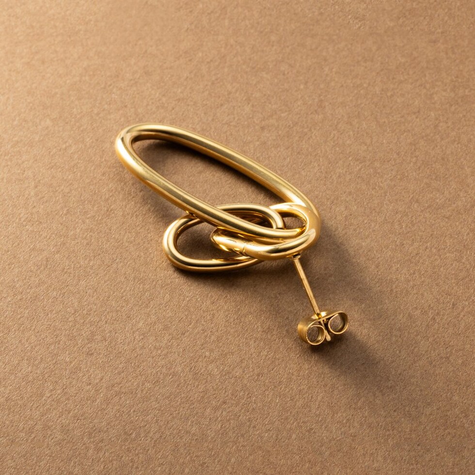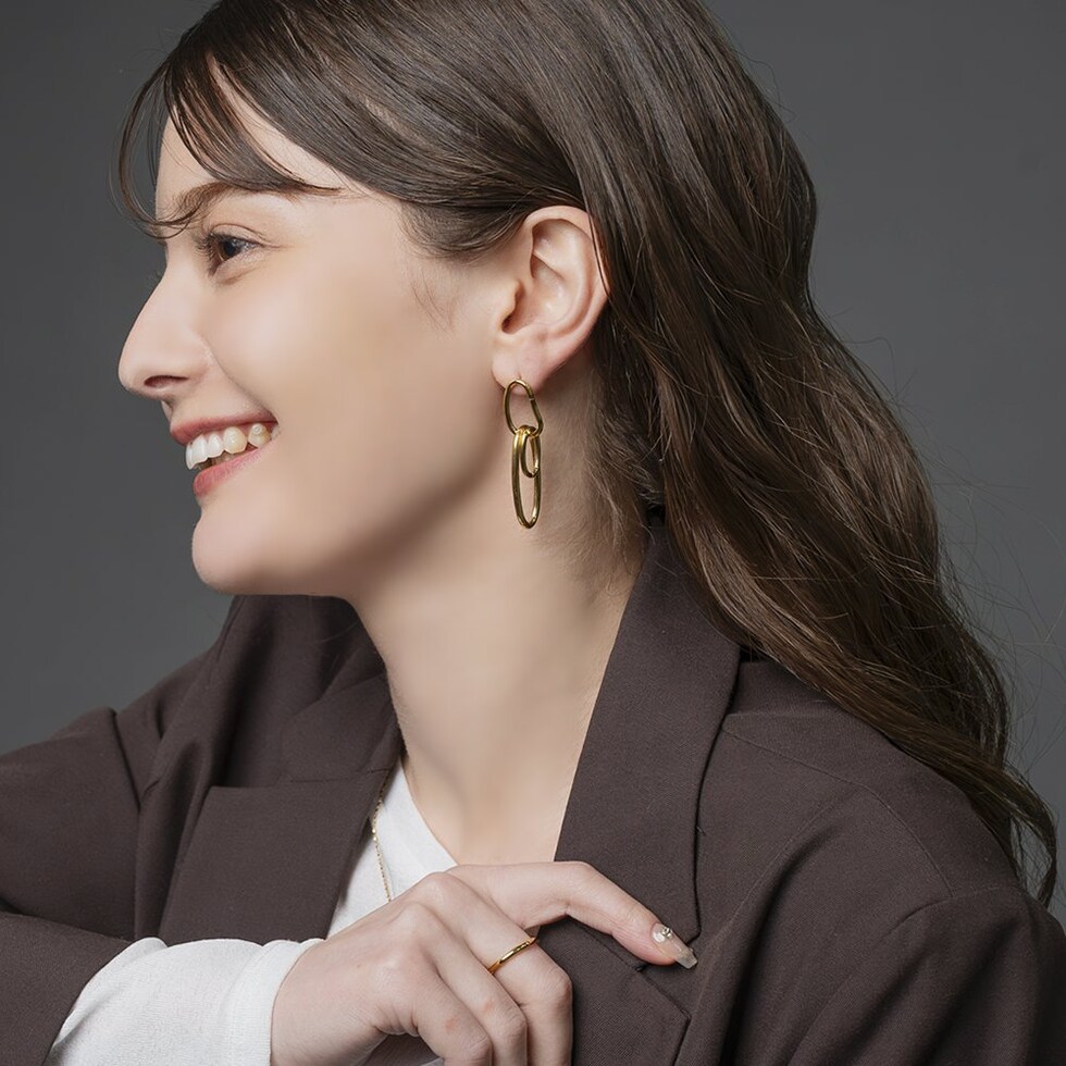 オーバルフープが揺れるステンレス製スイングピアス。ちょっぴり歪みの効いたフープラインに2サイズのオーバルフープを通したニュアンス漂うデザイン。動くたびに揺れて表情を変える縦長フォルムで小顔効果も狙えそう◎錆びにくいステンレス製でデイリーに活躍間違いなし