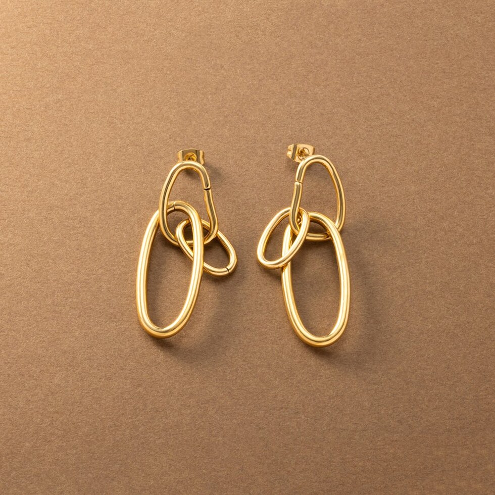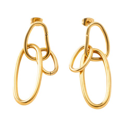 ピアス ステンレス 金属アレルギー サージカルステンレス レディース フープ つけっぱなし トリプルフープ スイング 揺れる 変形 歪み 大きめ オーバル cream dot ゆうパケット [ゴールド_ピアス]