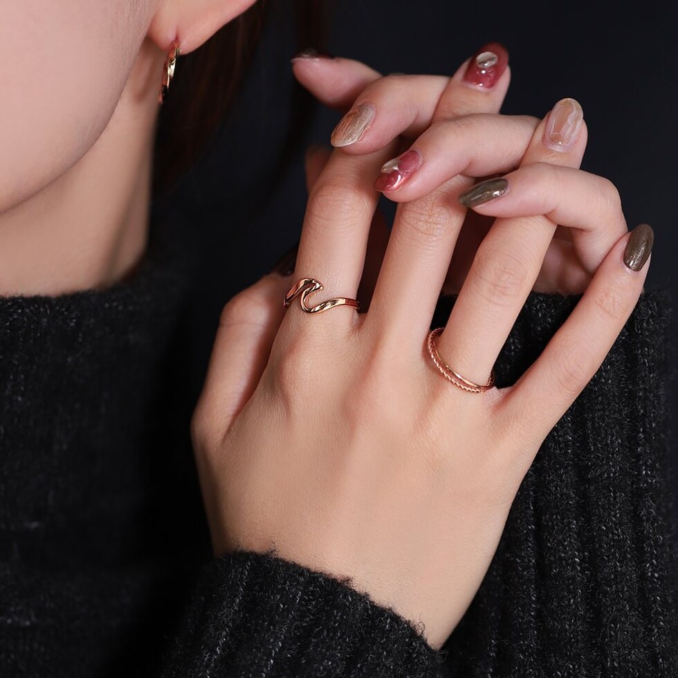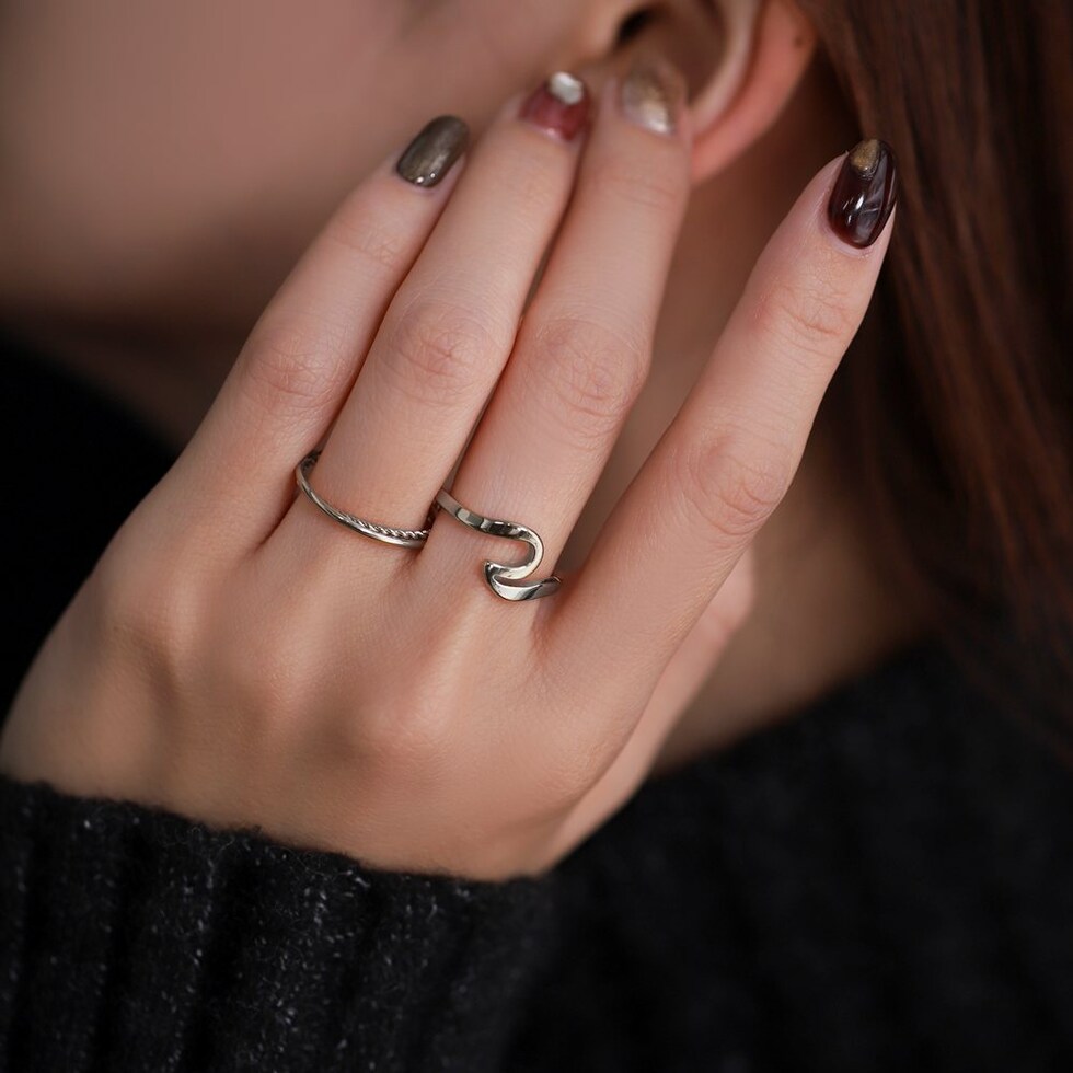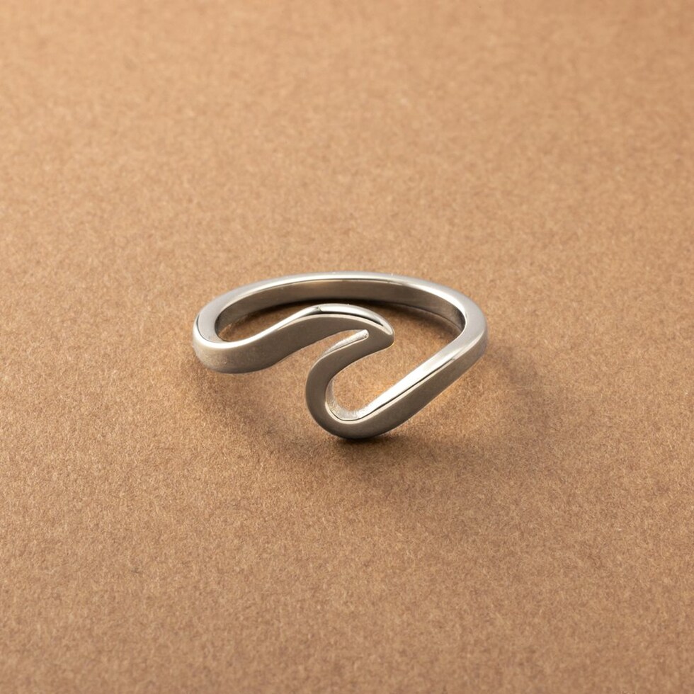 ユニークなウェーブラインが指先に優雅なアクセントを加えるリング。どんなスタイルにもさりげなく溶け込み、手元のコーデにモダンなひねりを加えてくれるアイテムです。長時間の着用にもオススメなステンレス製でデイリーに活躍してくれるひと品。
