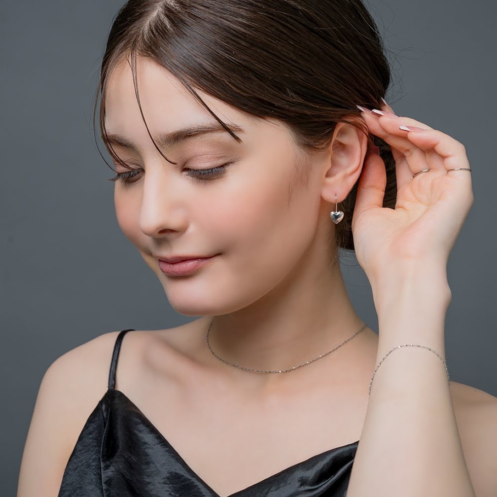 ぷっくりシルエットが可愛いハートモチーフのフックピアス。控えめなサイズ感が甘すぎない大人の可愛さを演出してくれます。耳元でさりげなく艶めきコーデのワンポイントとして幅広いシーンで活躍してくれるアイテム◎