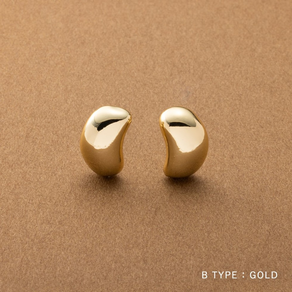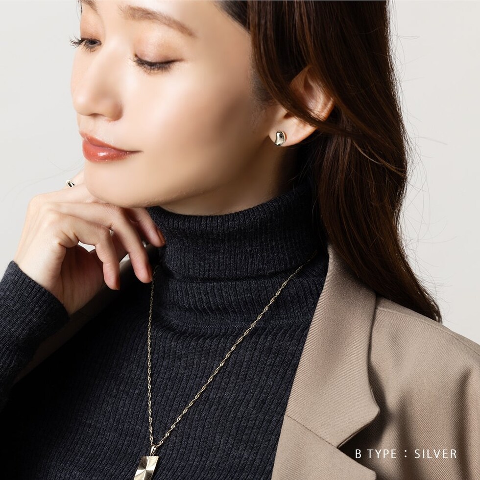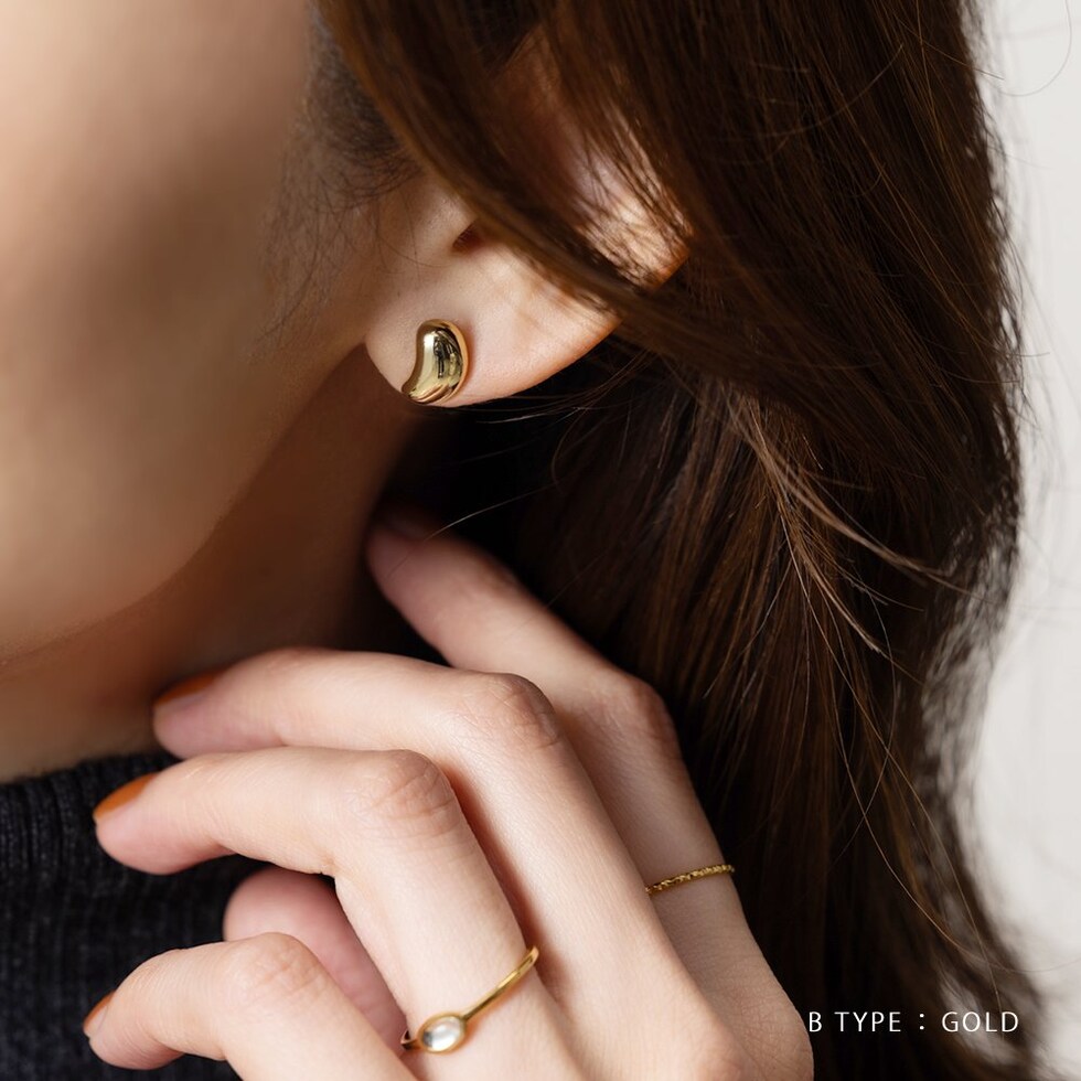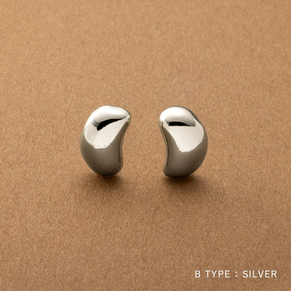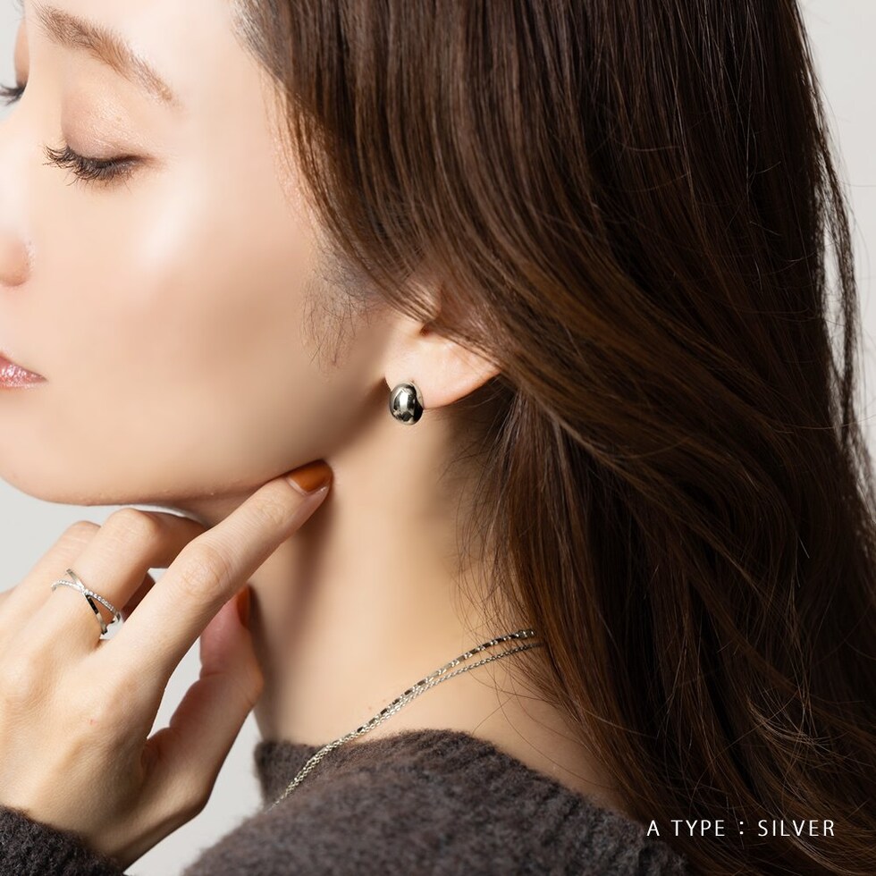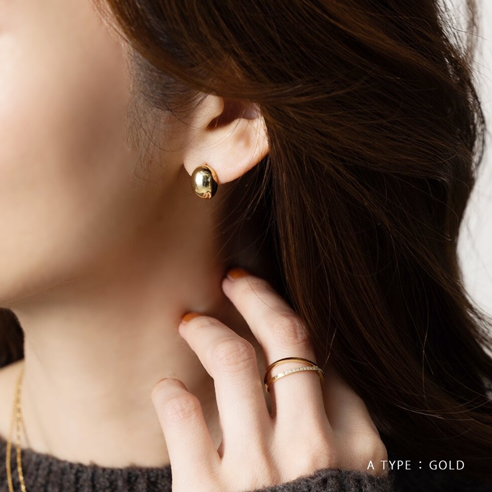 耳たぶにフィットする2TYPEぷっくりメタルピアス。ぷっくりとしたフォルムとメタルの艶感がすっきりとした大人顔へと導くマストアイテム。コロンとしたオーバル型とちょっぴり歪みを効かせたドロップ型の2タイプご用意◎