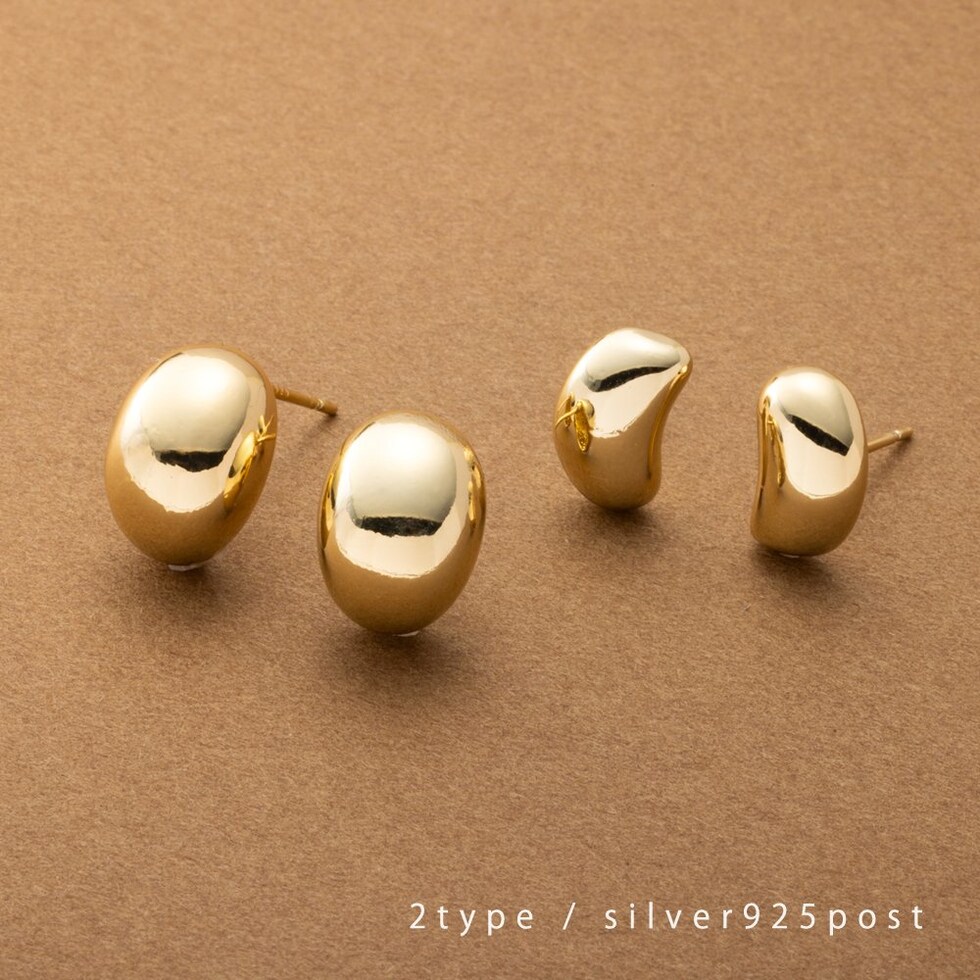 ピアス レディース ポスト SV925ポスト ぷっくり メタル オーバル ドロップ 2タイプ 変形 スタッド cream dot ゆうパケット [B:シルバー_ピアス]
