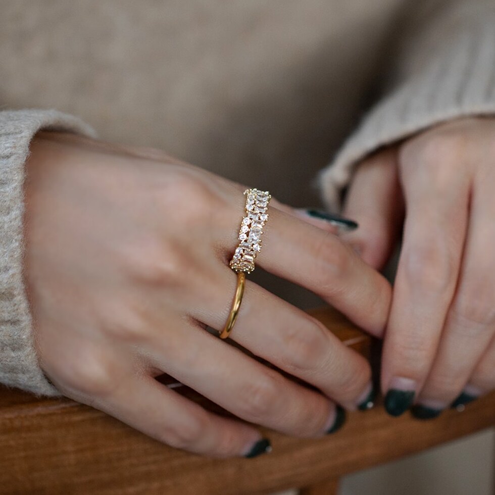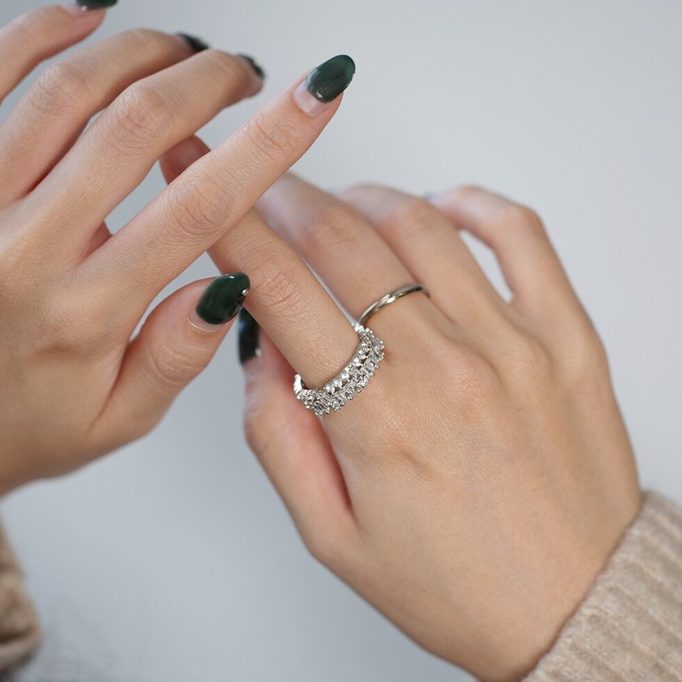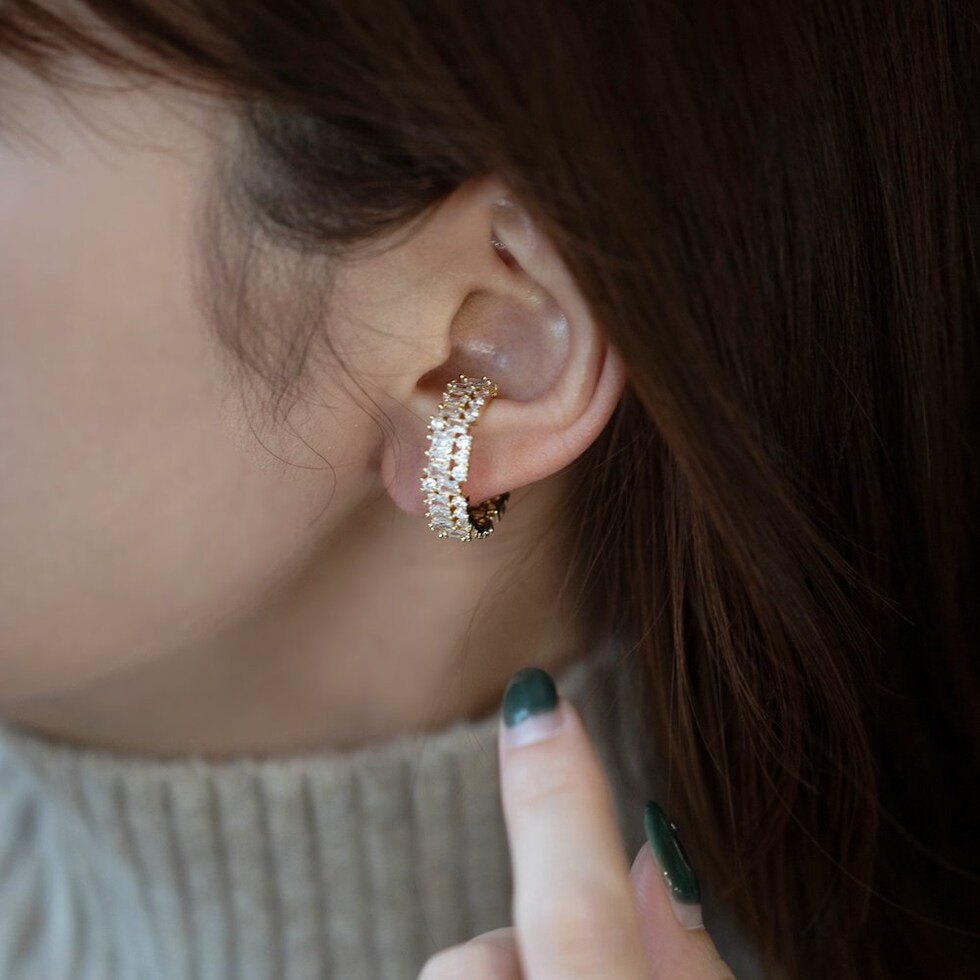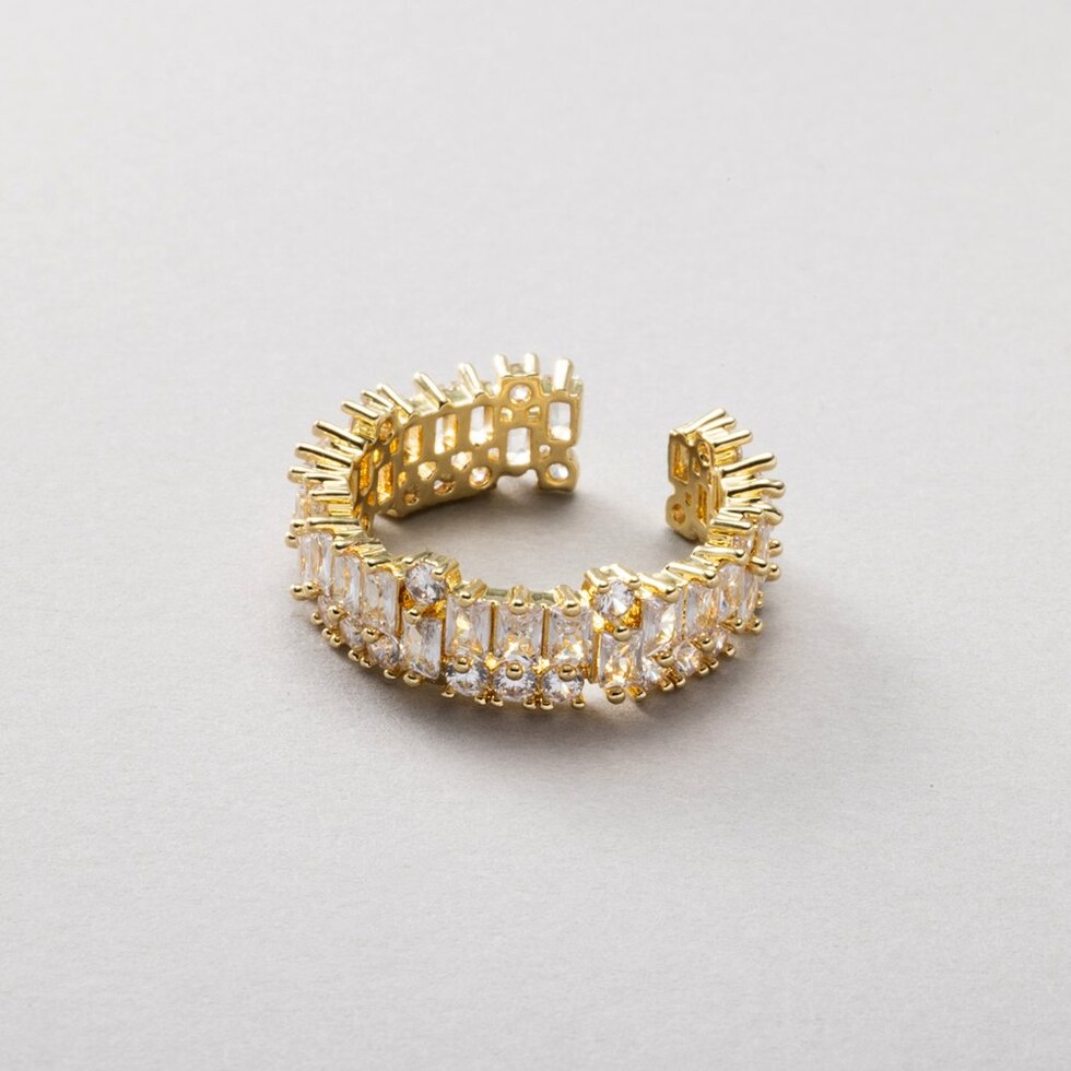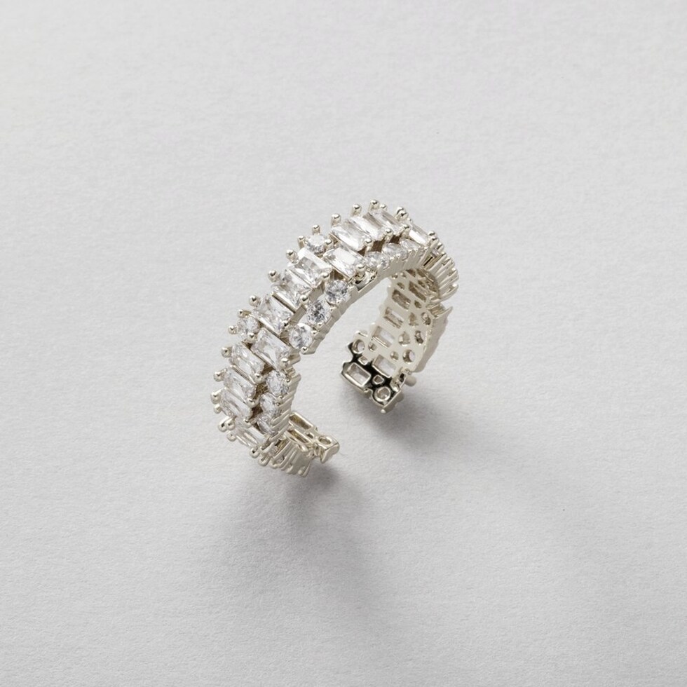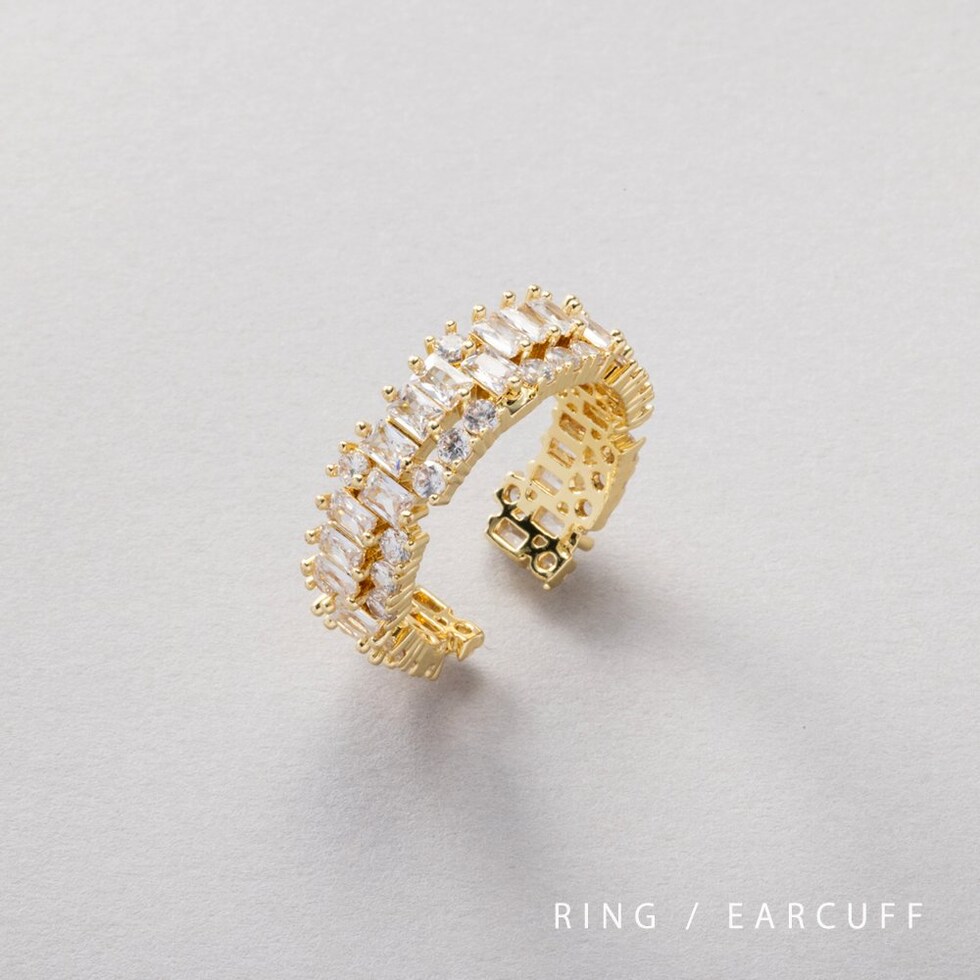 スクエアビジューのキラキラ華やぎオープンリング。極小ジルコニアとスクエアビジューが眩いほどキラキラと輝く上品さも兼ね備えた逸品。若干のサイズ調節が可能でイヤーカフとしても使える2WAYデザインです◎