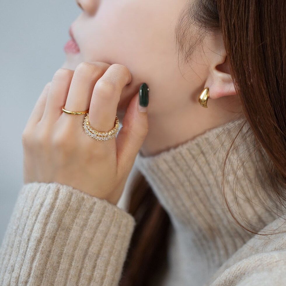 リング 指輪 レディース ビジュー スクエア パヴェ 2way オープンリング リングカフ イヤーカフ 調整可能 cream dot ゆうパケット [ゴールド_フリーサイズ]