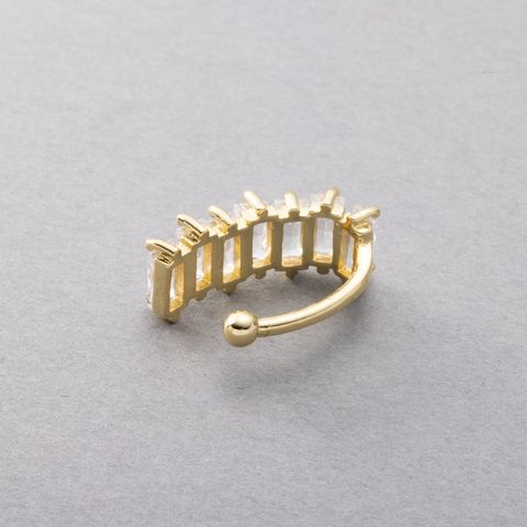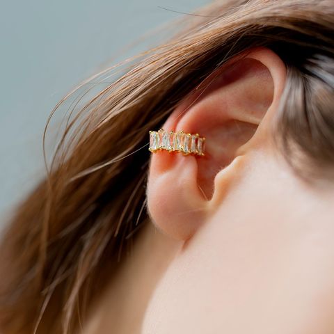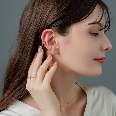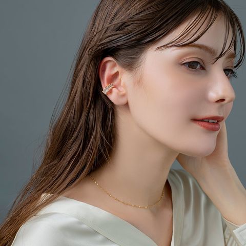 贅沢に並べたスクエアカットビジューが目を惹く片耳用イヤーカフ。女性らしい上品な輝きを放つビジューが顔周りを華やかに演出します。カジュアルにもきれいめにもマッチするオススメのひと品◎お手持ちのカフやピアスとコーディネートしてもお洒落に仕上がるアイテムです。