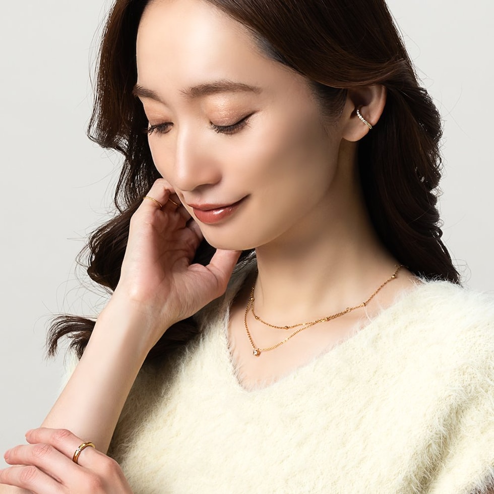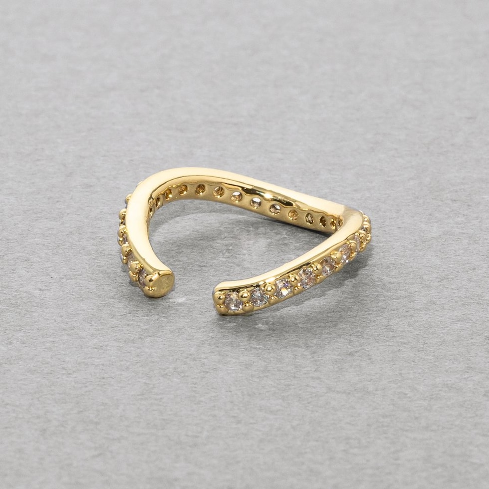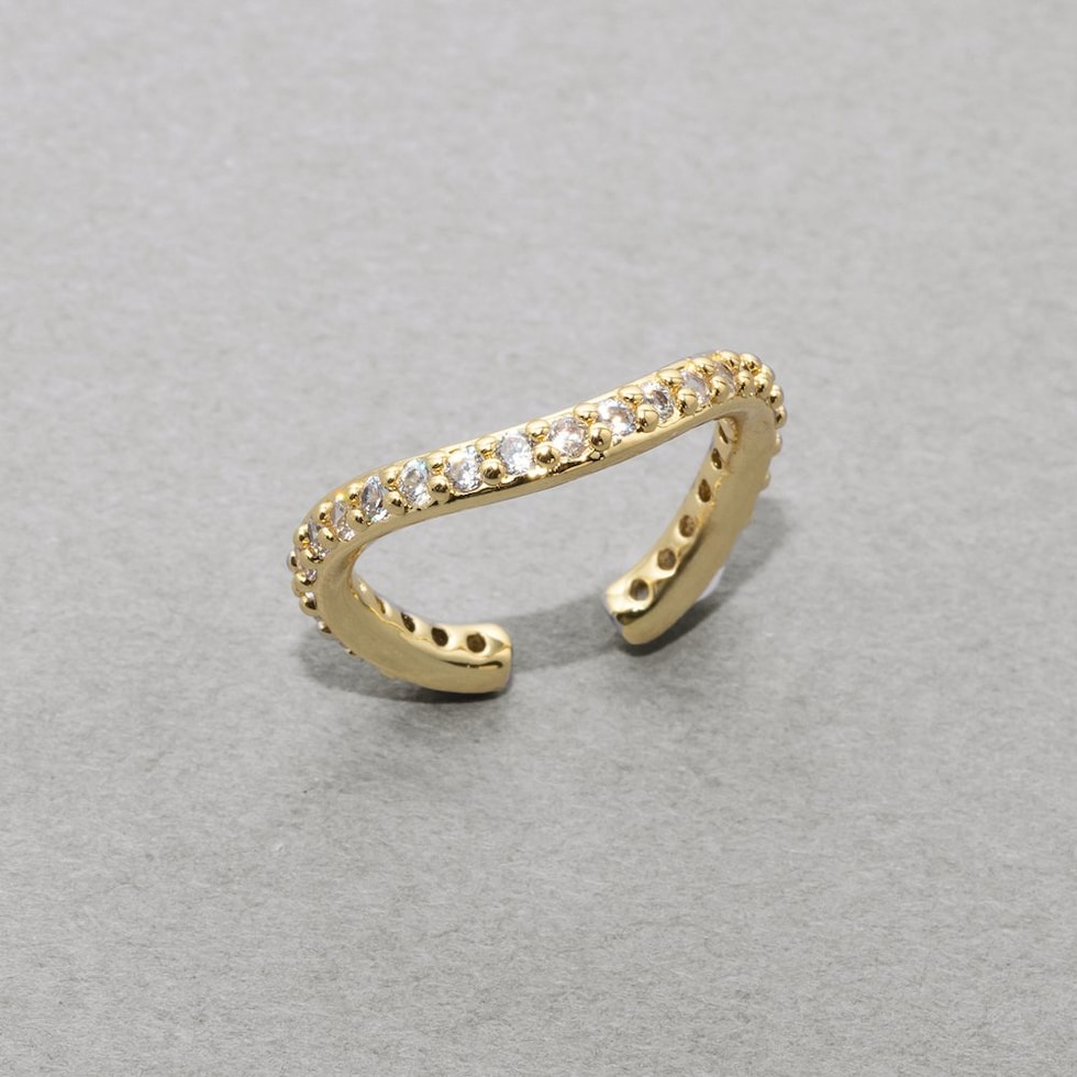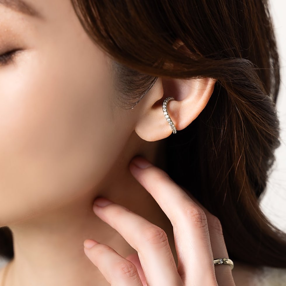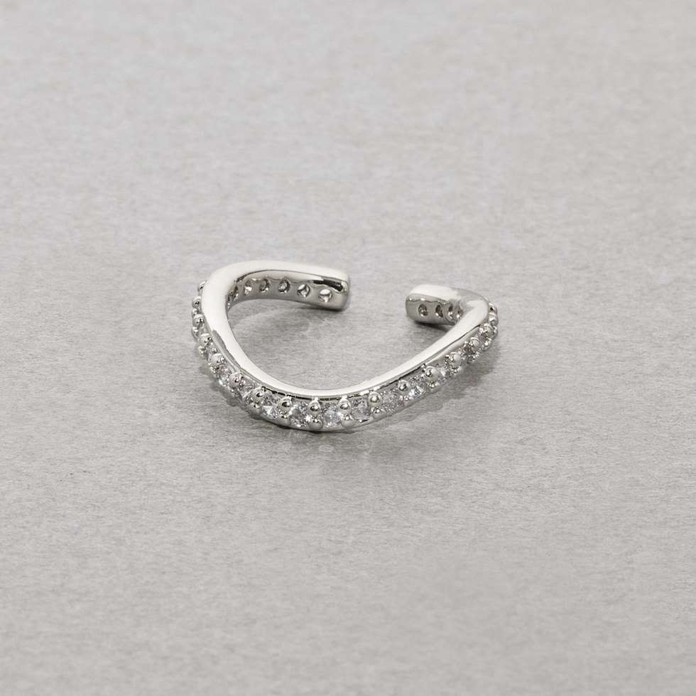 ビジュー×ウェーブラインの片耳用イヤーカフ。程よい存在感と華奢なフォルムがさりげなく煌めく大人上品なデザイン。一点投入するだけで周りと差がつくアイテムです。お手持ちのピアスと合わせても◎