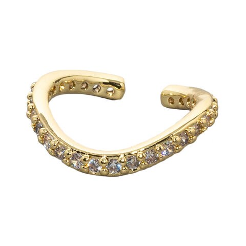 イヤーカフ レディース ビジュー ウェーブライン 片耳用 キュービックジルコニア イヤカフ cream dot ゆうパケット [ゴールド_フリーサイズ]