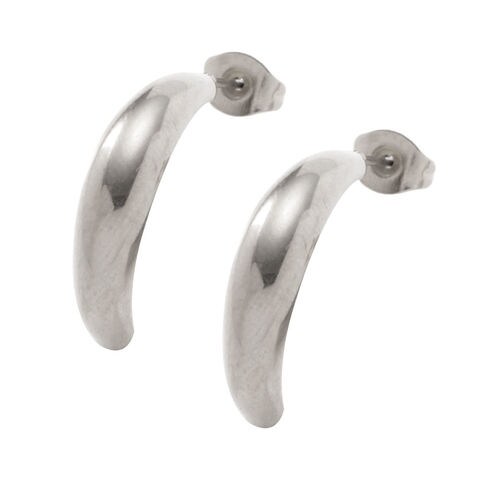 ぷっくりとしたカーブメタルのステンレス製ピアス。細身のシルエットがこなれた雰囲気に仕上がるひと品。シンプルで合わせやすいサイズ感が大人コーデのアクセントとしてオススメなアイテムです。