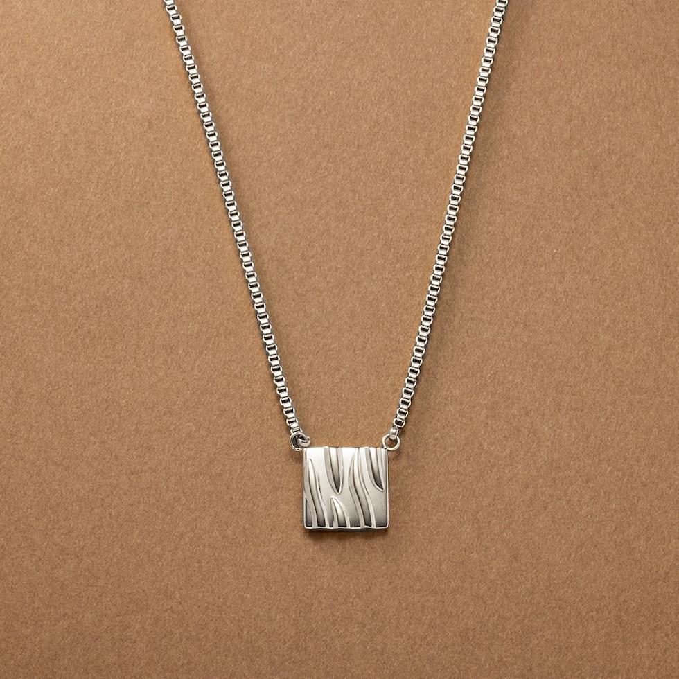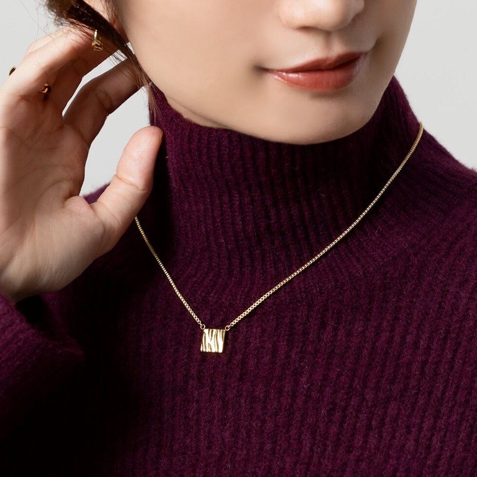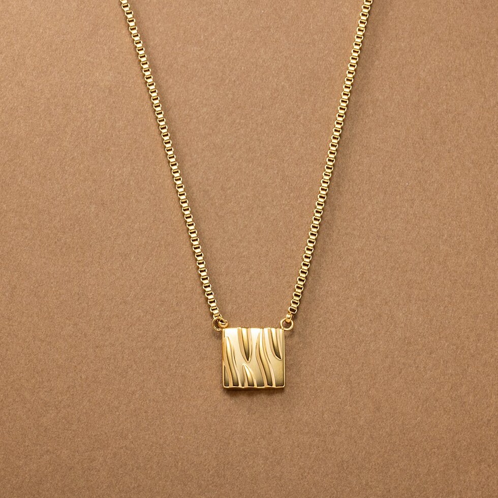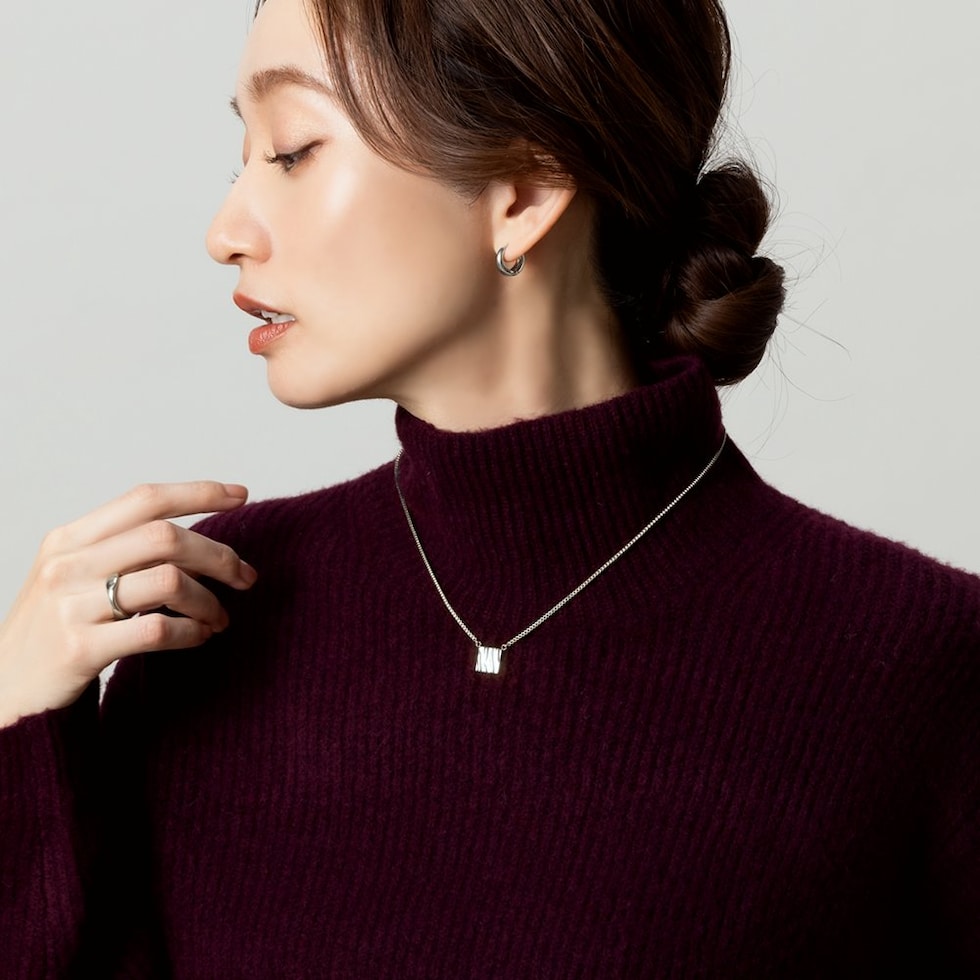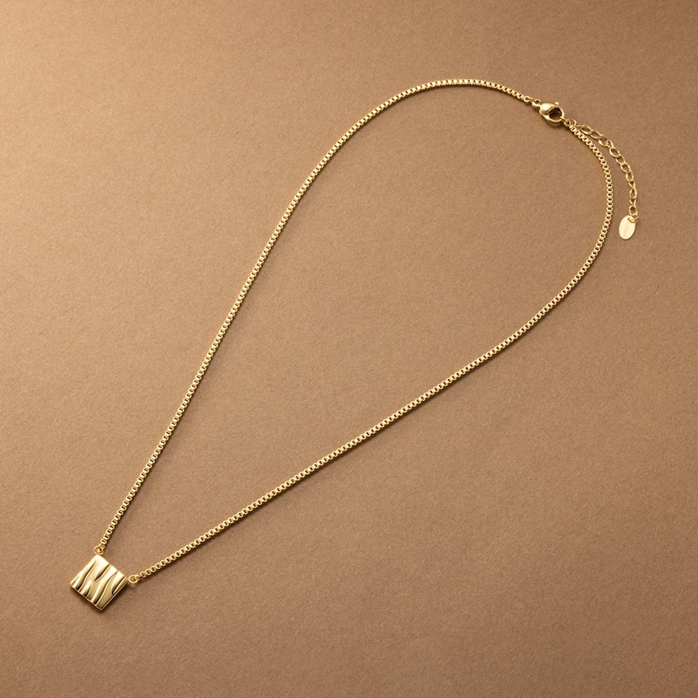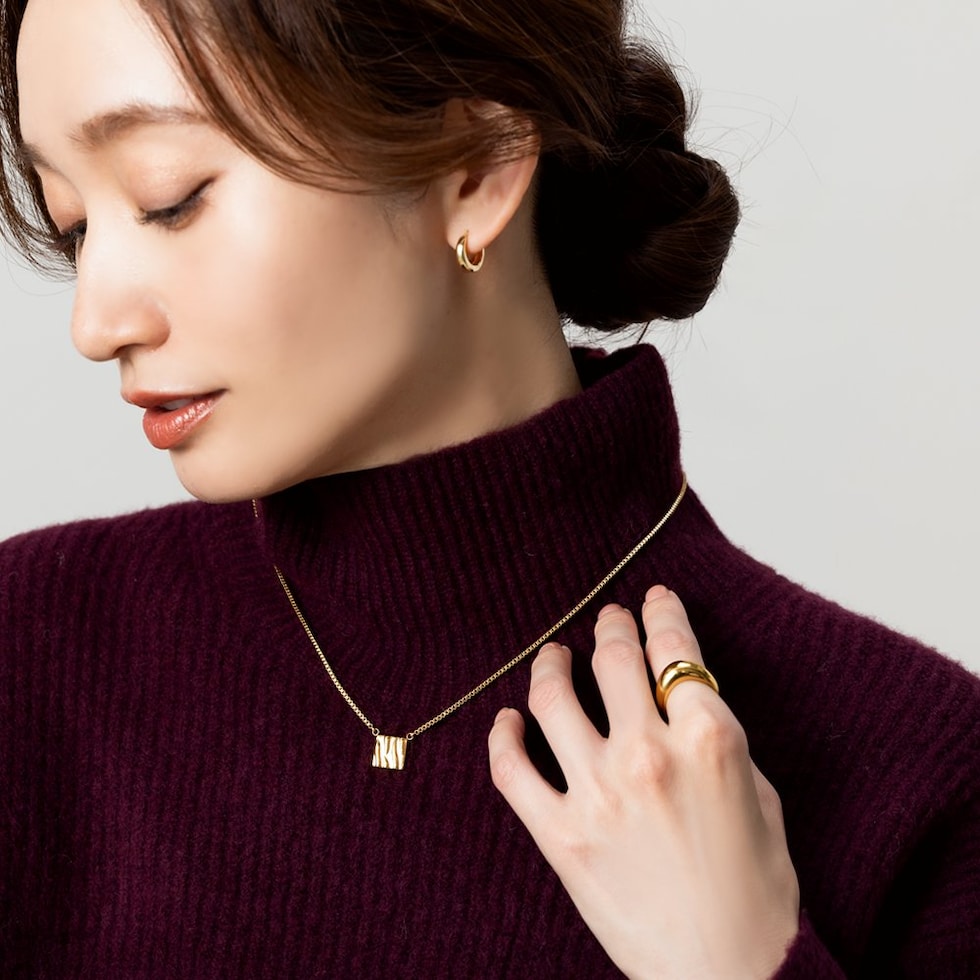 ベネチアンチェーンとタイルモチーフが印象的なネックレス。さりげなくもニュアンス感たっぷりなデザインがこなれた雰囲気に。動くたびに美しく艶めき、どんなスタイルにもエレガントなアクセントを加えてくれるひと品です。