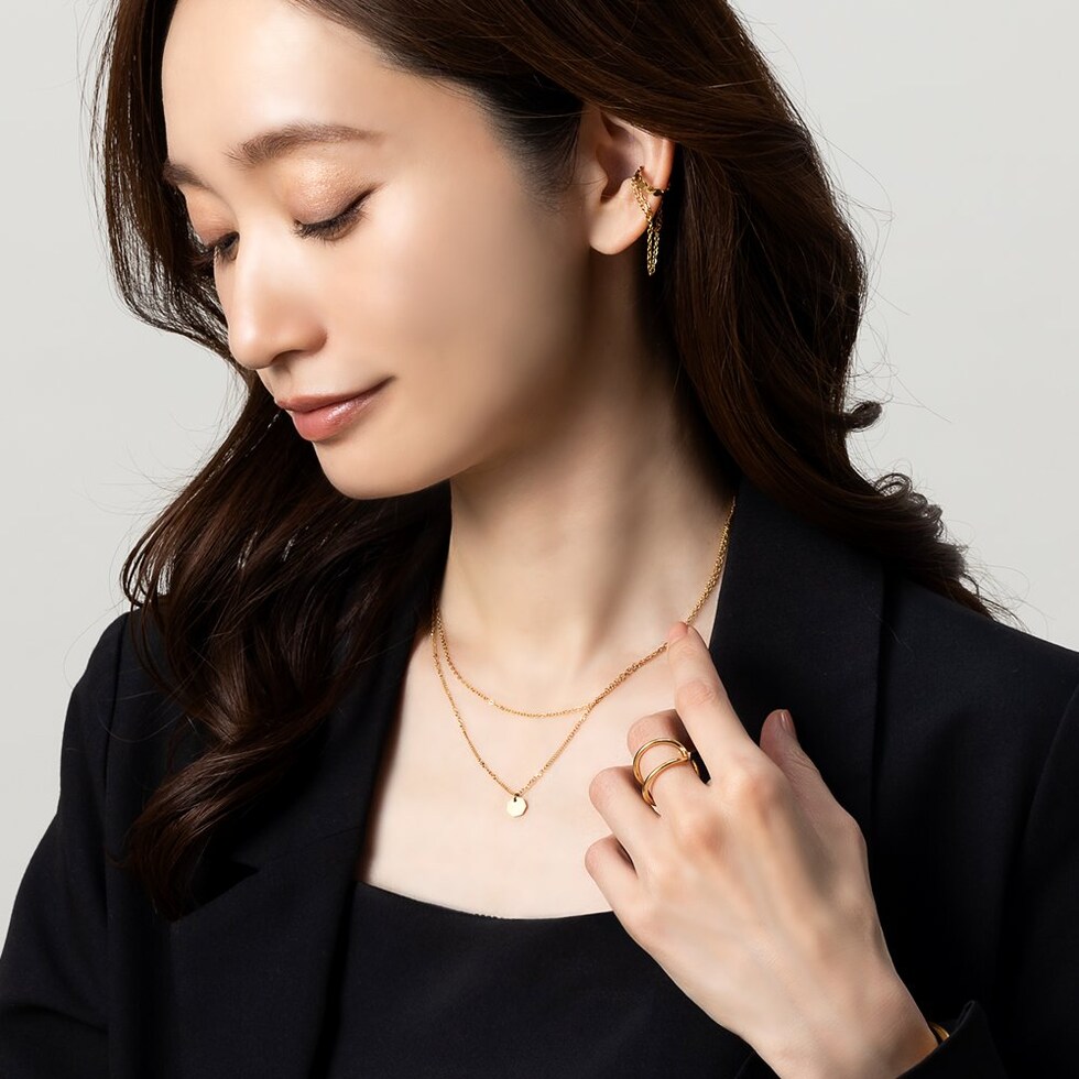 ミニマムなヘキサゴンプレートと華奢チェーンの2連ネックレス。さりげなく煌めくモチーフが女性らしい上品な雰囲気を演出。シンプルデザインで錆びにくいステンレス製だからデイリー使いにオススメ◎