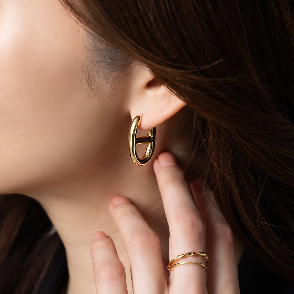 アンカーの鎖をイメージしたマリンモチーフがおしゃれなキャッチレスピアス。さりげなく個性的なデザインと程よいサイズ感が大人顔に仕上げてくれるひと品◎カジュアルにもキレイめにもスタイリングしやすいアイテムです。