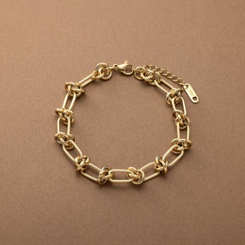 大人モードなステンレス製オーバルチェーンブレスレット。きゅっと結んだようなノットモチーフでオーバルチェーンを繋げた個性的なデザインで“こなれ感”をプラス。錆びにくいステンレス製でデイリーに活躍しそう。