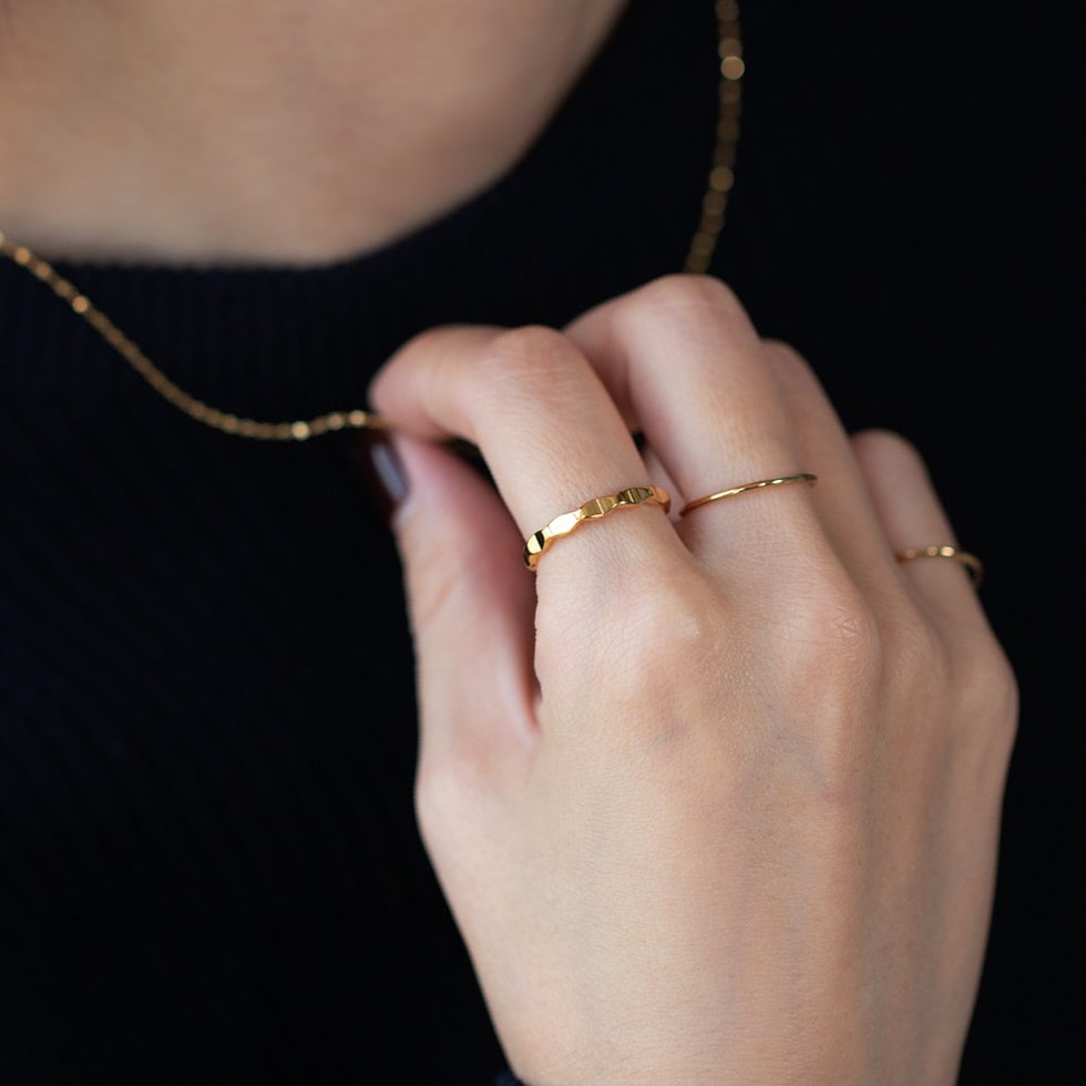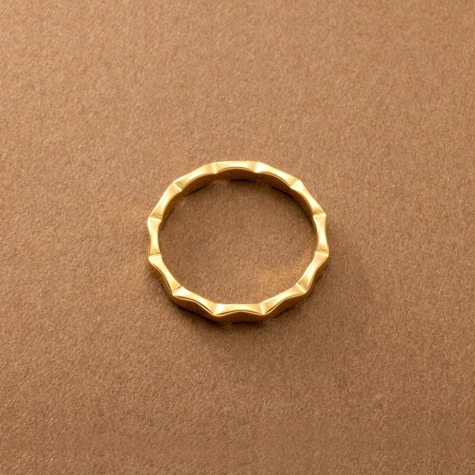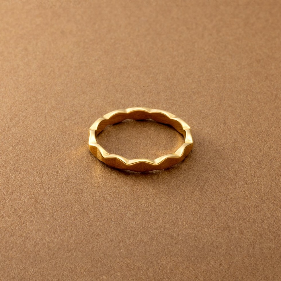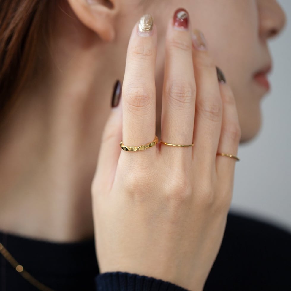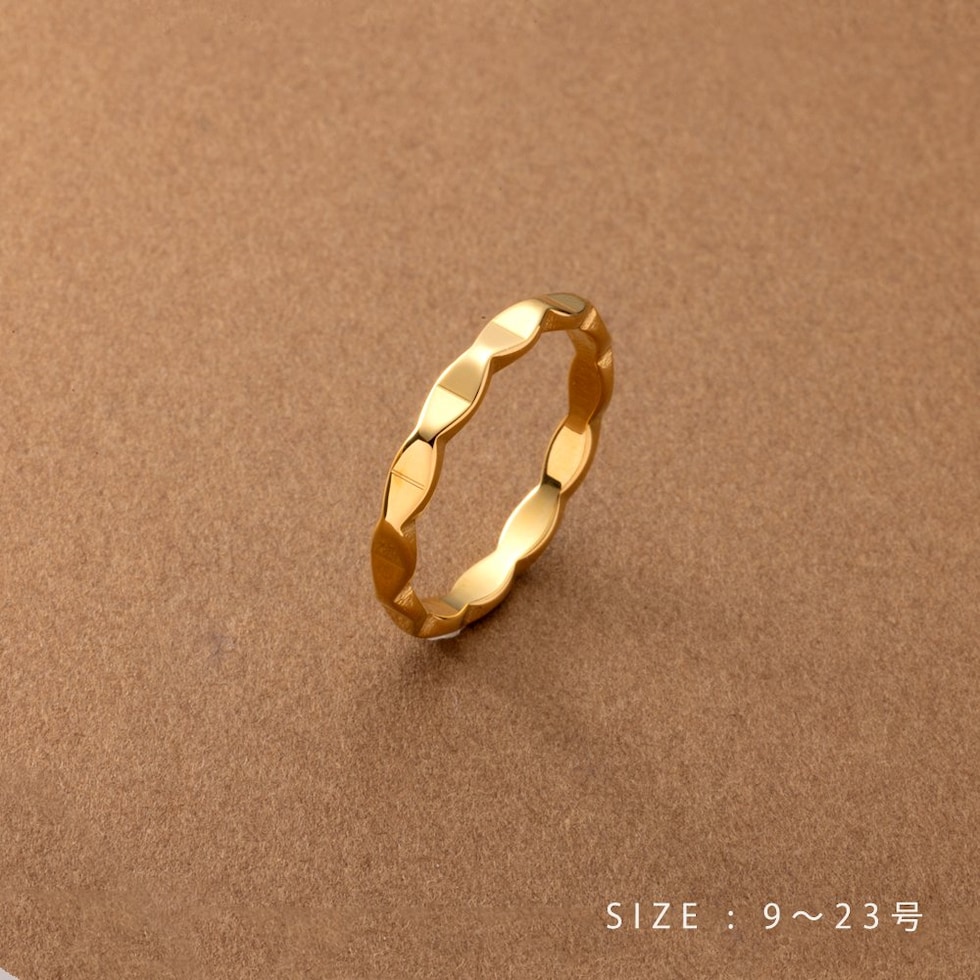 リング 指輪 ステンレス 金属アレルギー サージカルステンレス レディース つけっぱなし ひし形 凹凸 変形 メタル サイズ豊富 cream dot ゆうパケット [ゴールド_17号]