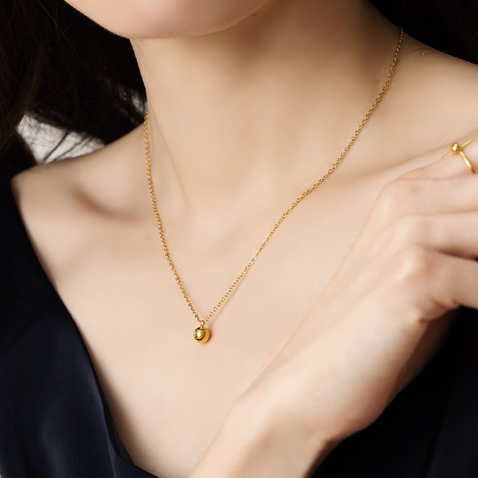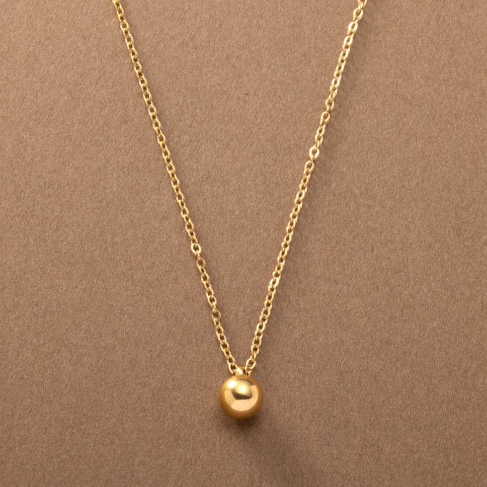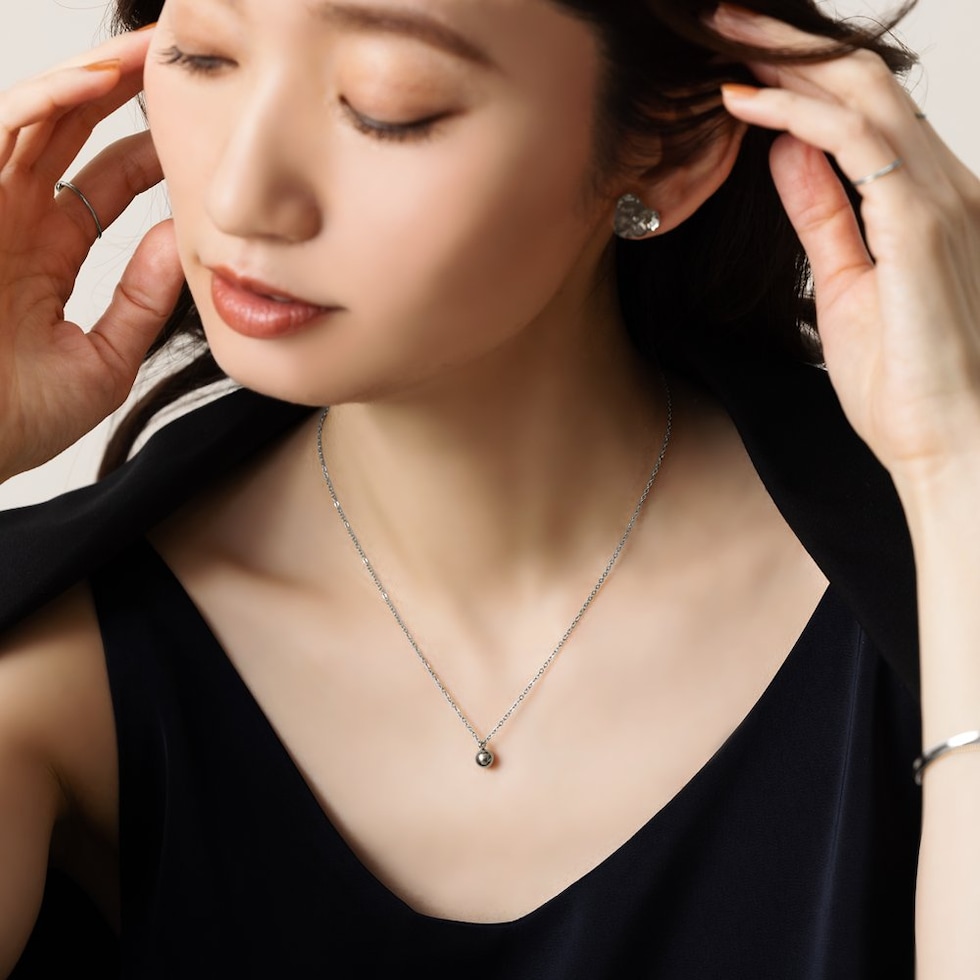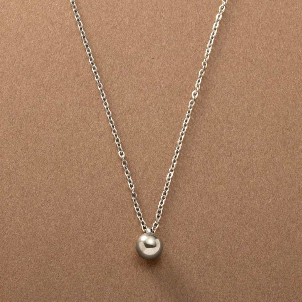 艶めくメタルボールのステンレス製ネックレス。あずきチェーンにメタルボールを通したシンプルで飽きの来ないデザインが魅力。華奢で女性らしく、上品なサイジングが高級感漂う逸品です。オンオフ問わずにポイント使いできそう◎