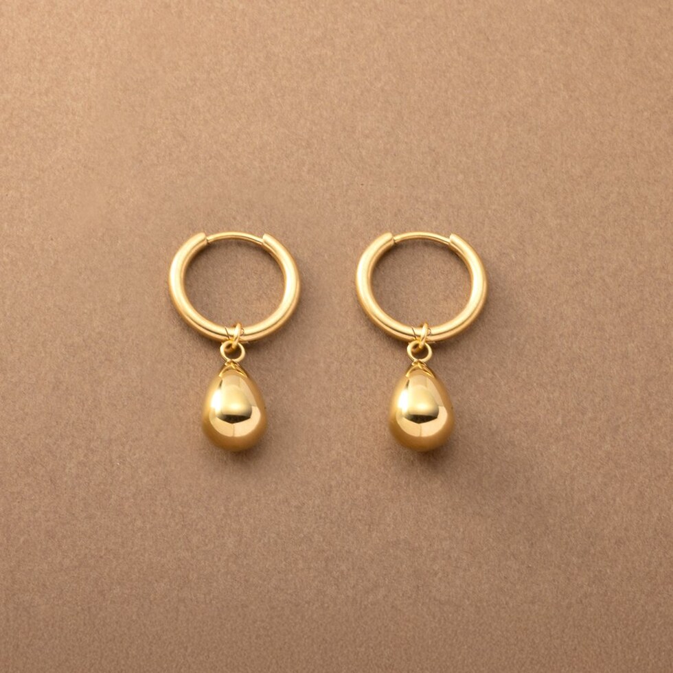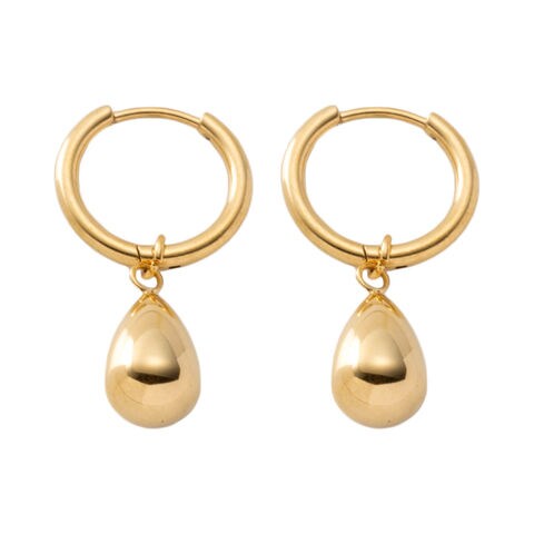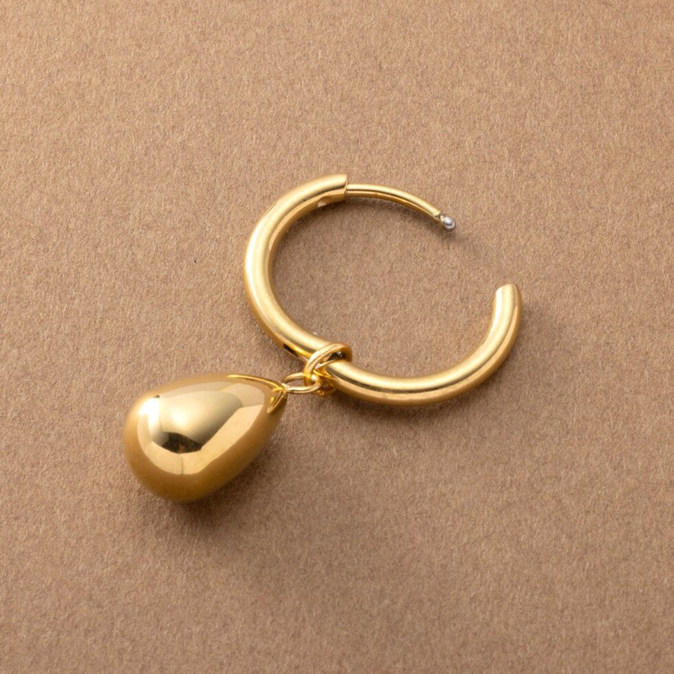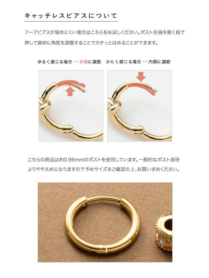 ピアス ステンレス 金属アレルギー サージカルステンレス レディース フープ つけっぱなし ぷっくり ドロップ 2way 揺れる 中折れ キャッチレス 開閉式 cream dot ゆうパケット [ゴールド_ピアス]