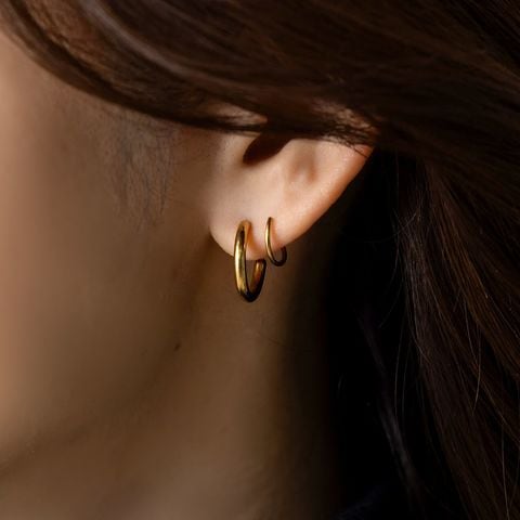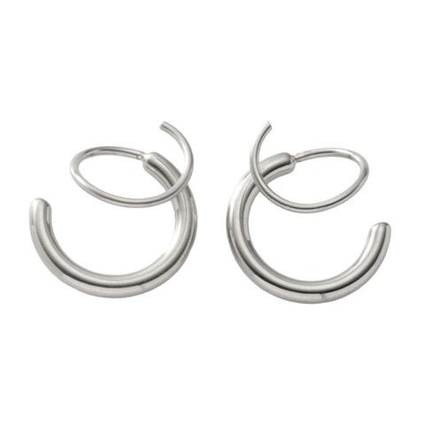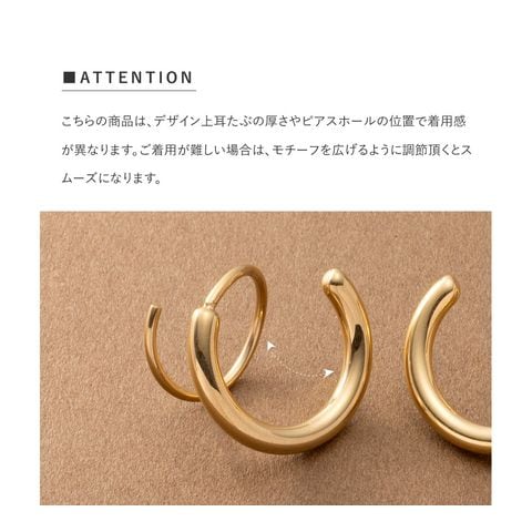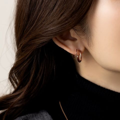 細ループ部分をくるくると回転させて装着するスクリューループピアス。太さの異なるループラインがレイヤードのように見えるデザイン。大人コーデのアクセントにぴったりなアイテムです◎錆びにくく傷に強いステンレス製で、長時間の着用も安心の低アレルギー素材です。