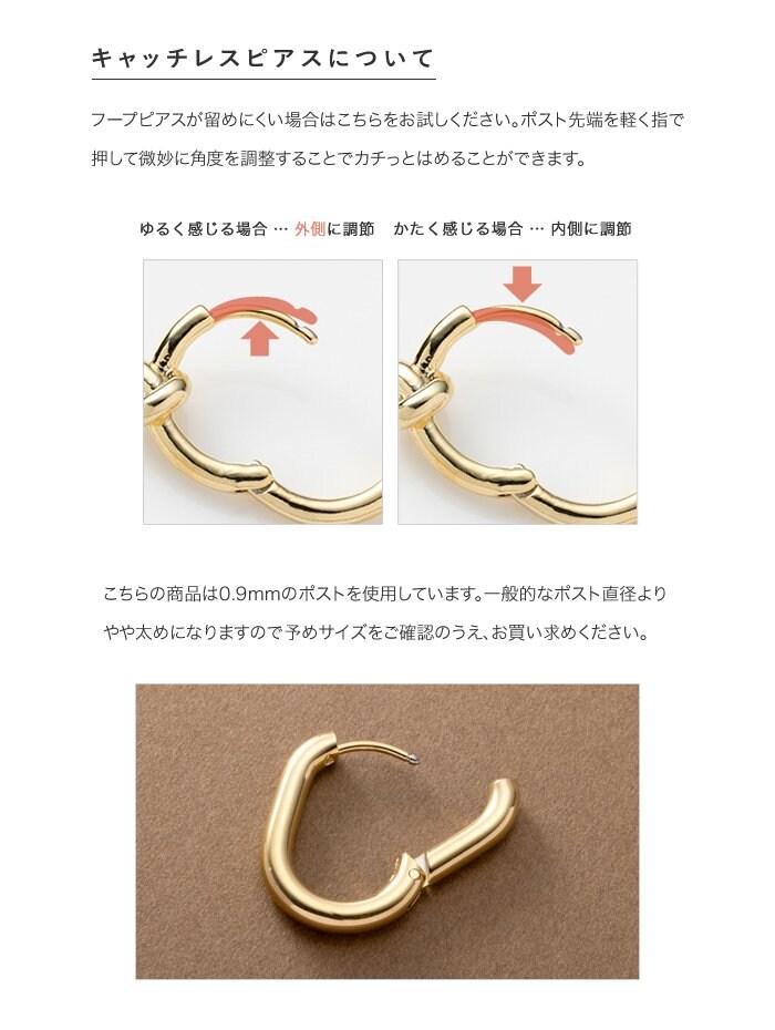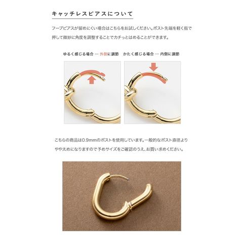 ピアス ステンレス 金属アレルギー サージカルステンレス レディース フープ つけっぱなし 2サイズ オーバル 中折れ キャッチレス 開閉式 cream dot ゆうパケット [ゴールド_Mサイズ]
