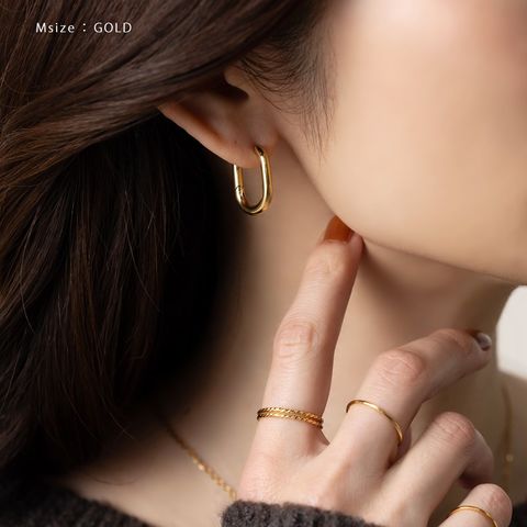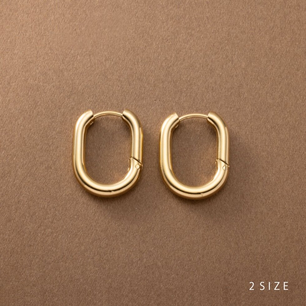 選べる2サイズのステンレス製オーバルピアス。シンプルなオーバルフープが大人っぽさ惹き立て洗練されたモードな雰囲気をプラスするひと品◎錆びにくいステンレス製でデイリーに活躍するアイテムです。br>