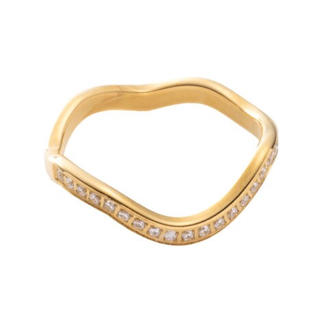 ウェーブ×ビジューラインが指先で煌めくリング。緩やかなウェーブラインと小粒なビジューが手元を美しく演出します。上品な存在感でシーンを選ばず使えるひと品。