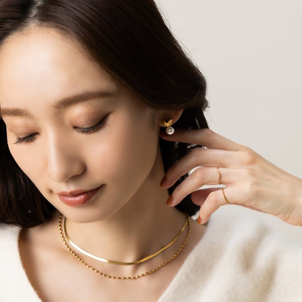 ニュアンスある歪なハートとパールを組みあわせたピアス。ワンポイントにちょうど良いサイズ感で顔周りに上品な煌きをプラス◎錆びにくく傷に強いステンレス製で、長時間の着用も安心の低アレルギー素材です。