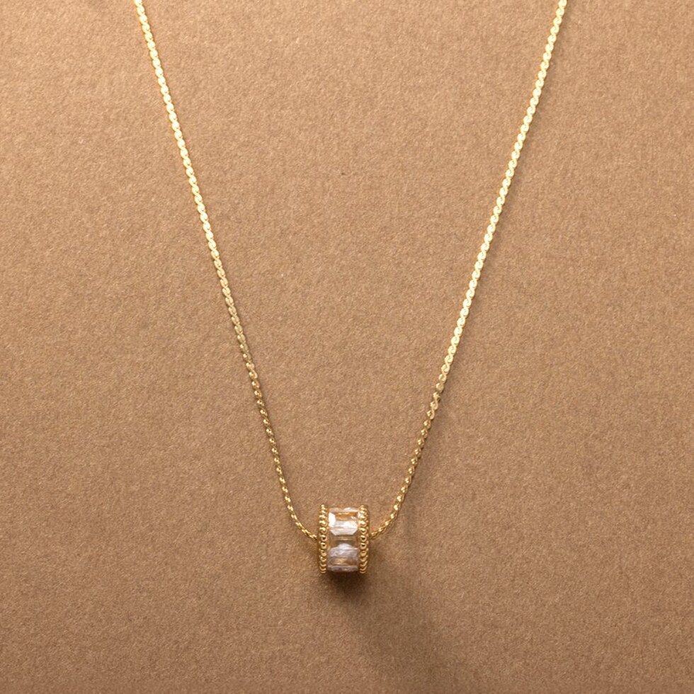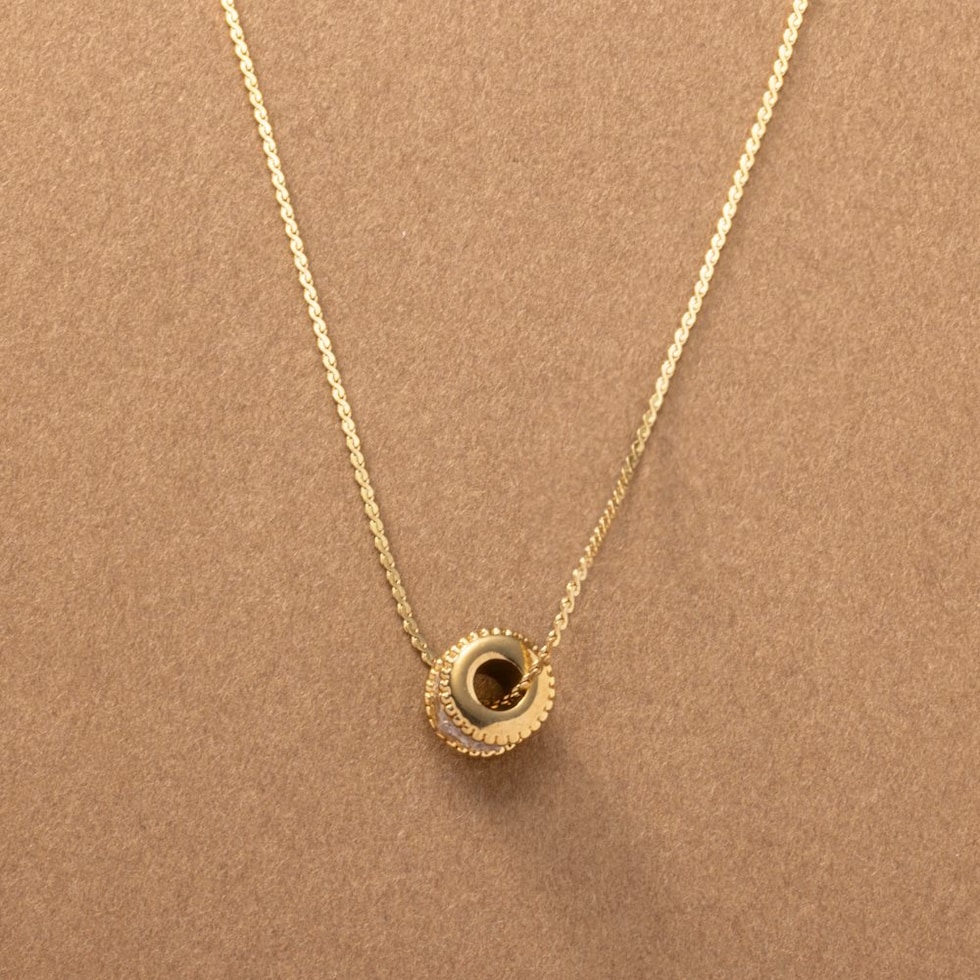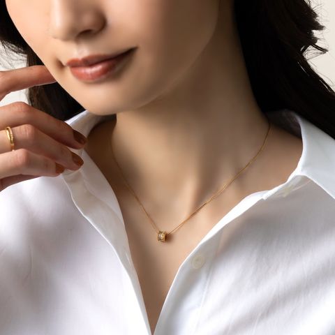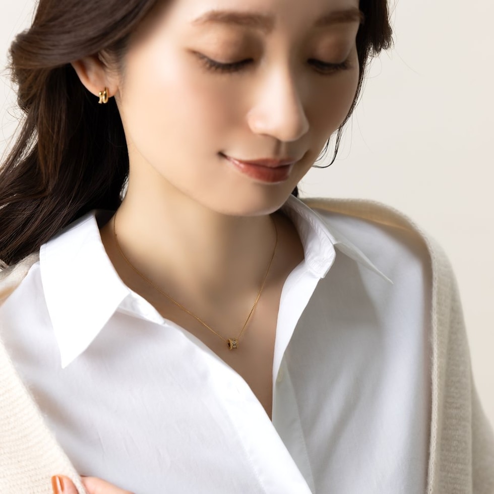 ロンデルの周りには繊細なミル打ちデザインが施されデコルテを華やかに彩ります。