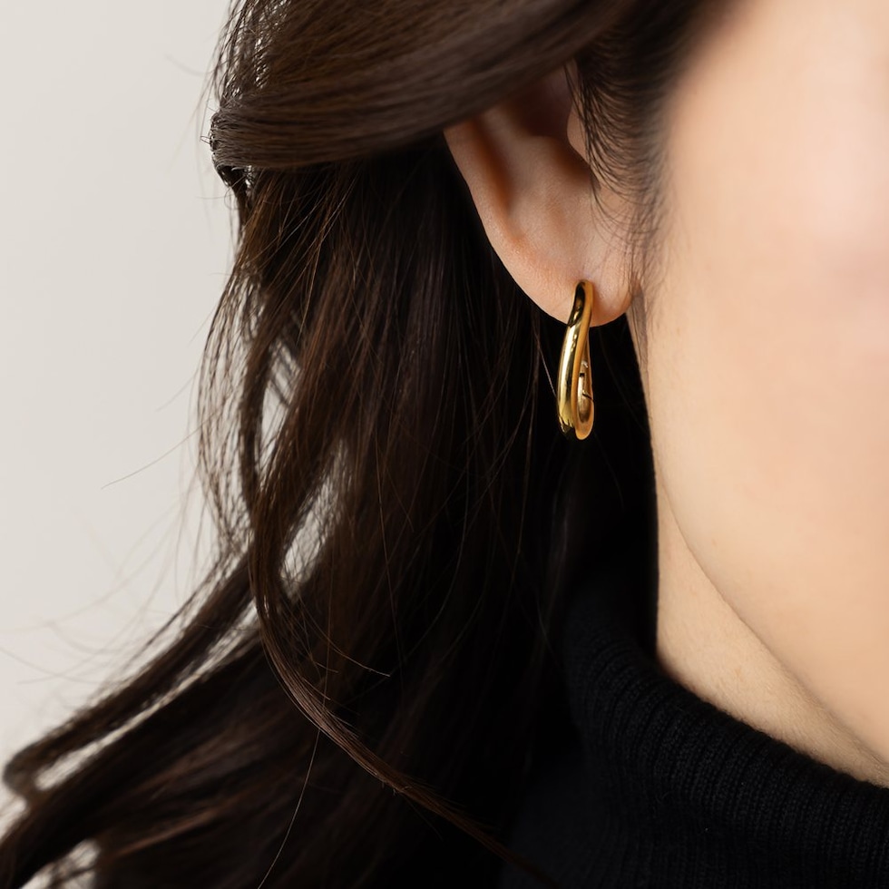 見る角度で表情が変化するニュアンスラインの変形キャッチレスピアス。控えめながらも存在感のある絶妙なサイズ感と、技あり変形ラインがいつものコーデを格上げしてくれるアイテム◎錆びにくく傷に強いステンレス製です。