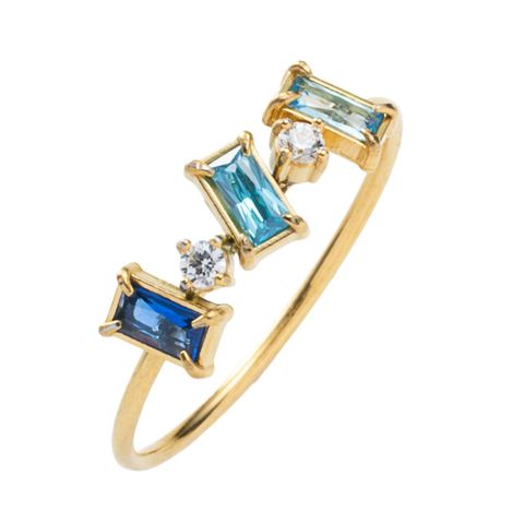品よく煌めくカラーストーンのバケットカットリング。華やに彩るカラービジューと細身なデザインが、シャープでモダンな印象に仕上げてくれます。きれいめにもカジュアルにも、コーデに迷うことなくおしゃれを楽しめそう。