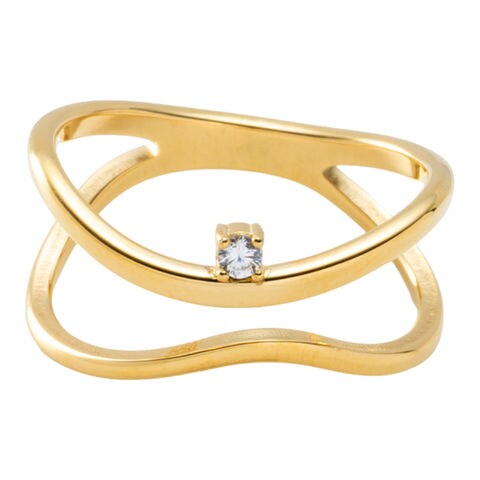 ひと粒のビジューを添えたダブルウェーブラインの3TYPEステンレス製リング。緩やかにカーブする2つのメタルラインを合わせた“オトナの定番”レイヤード風デザイン。3タイプからお好みのウェーブラインを選んで◎