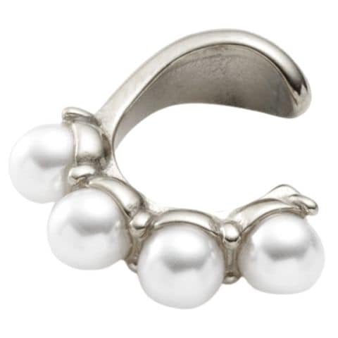 4粒パールの片耳用ステンレス製イヤーカフ。ぷっくりとしたメタルカフに4粒のパールを並べた女性らしいさ溢れるデザイン。コーデに少し華やかさがほしい時にパールを気軽に取り入れられる優秀アイテムです。錆びにくいステンレス製でデイリーに活躍しそう◎