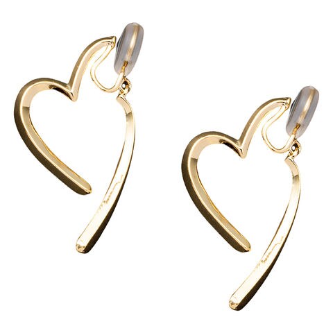 イヤリング レディース ハート ライン バックキャッチ風 カーブ バー 変形 メタル クリップ式 シリコンカバー に見える 揺れる cream dot ゆうパケット [ゴールド_イヤリング]