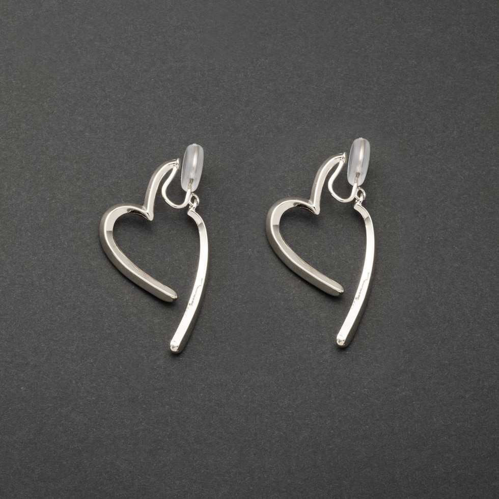イヤリング レディース ハート ライン バックキャッチ風 カーブ バー 変形 メタル クリップ式 シリコンカバー に見える 揺れる cream dot ゆうパケット [シルバー_イヤリング]