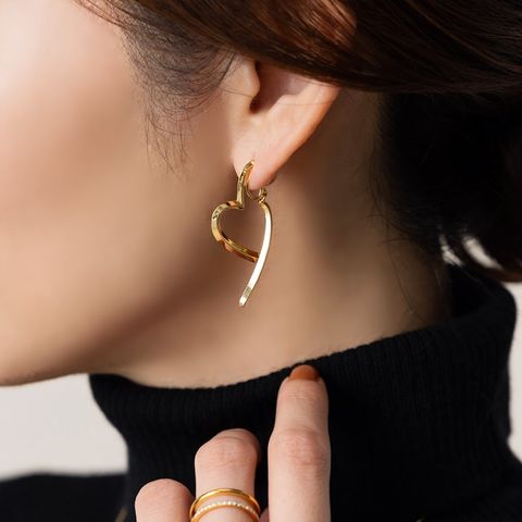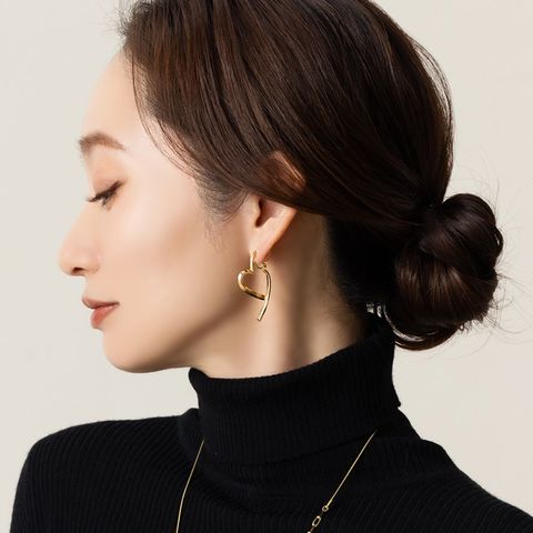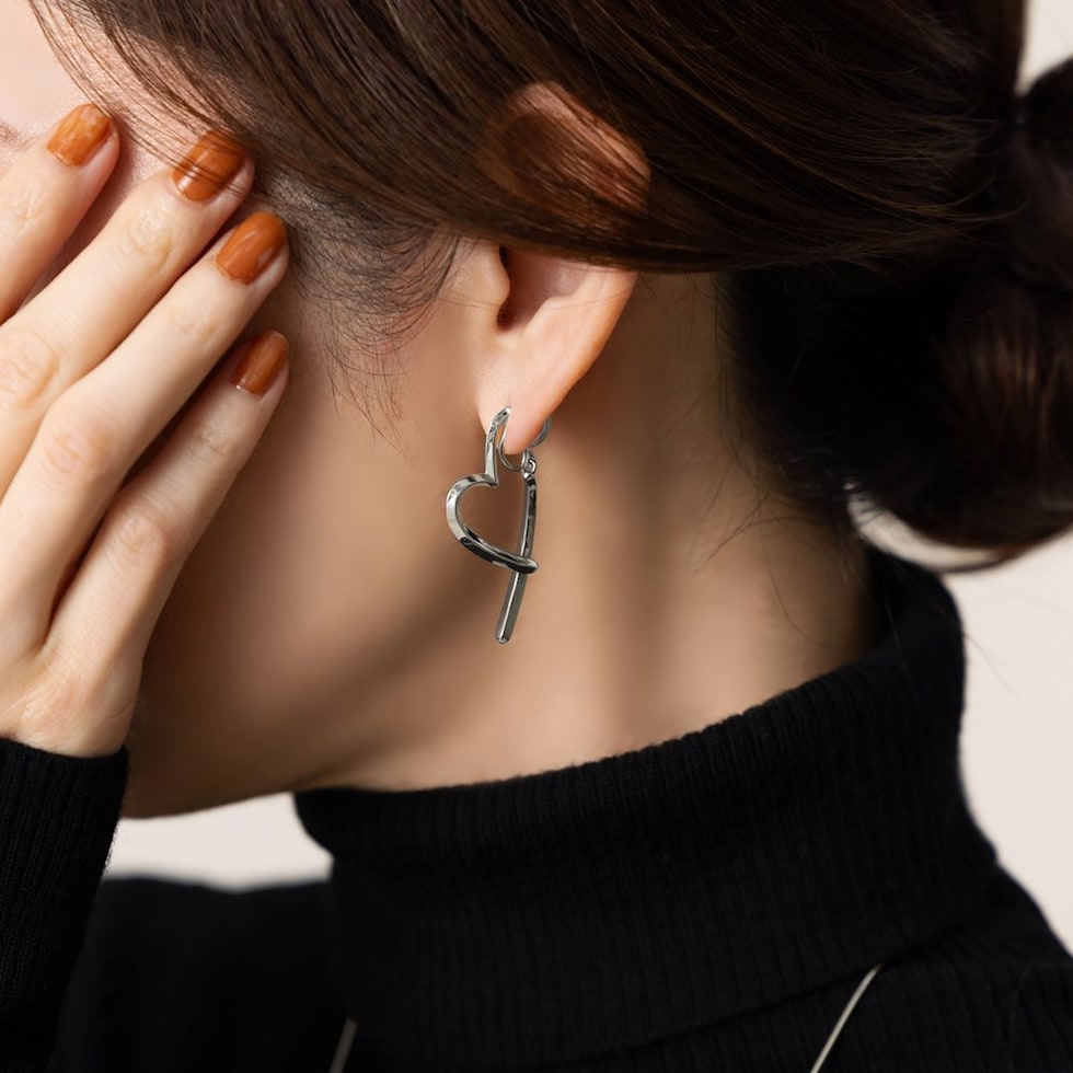 ハートラインのバックキャッチ風イヤリング。2つのモチーフで耳たぶを挟み込んでハートをつくる新鮮なデザイン。耳たぶの後ろでチラチラと揺れるカーブバーが自然と周りの目を惹きつけてあなたの魅力をアピールしてくれます。