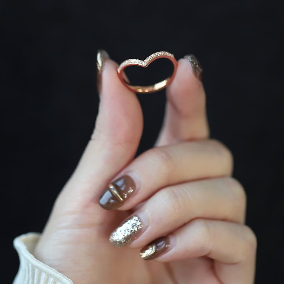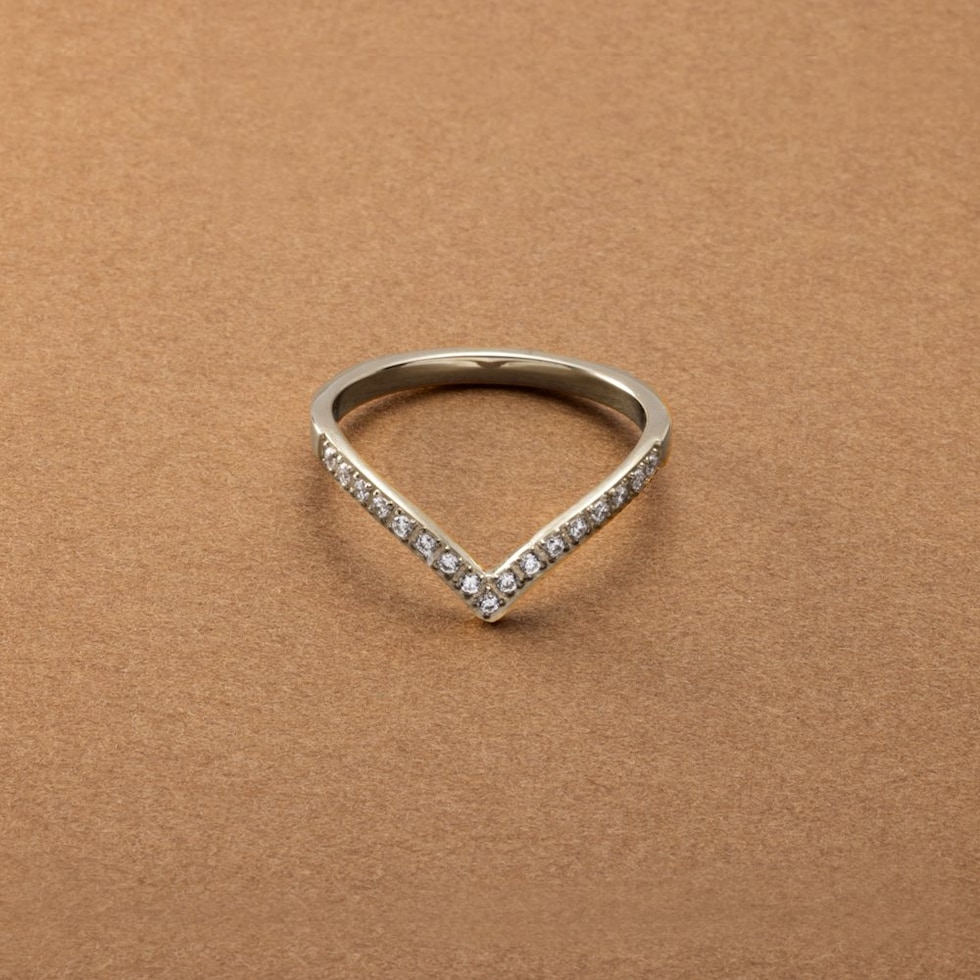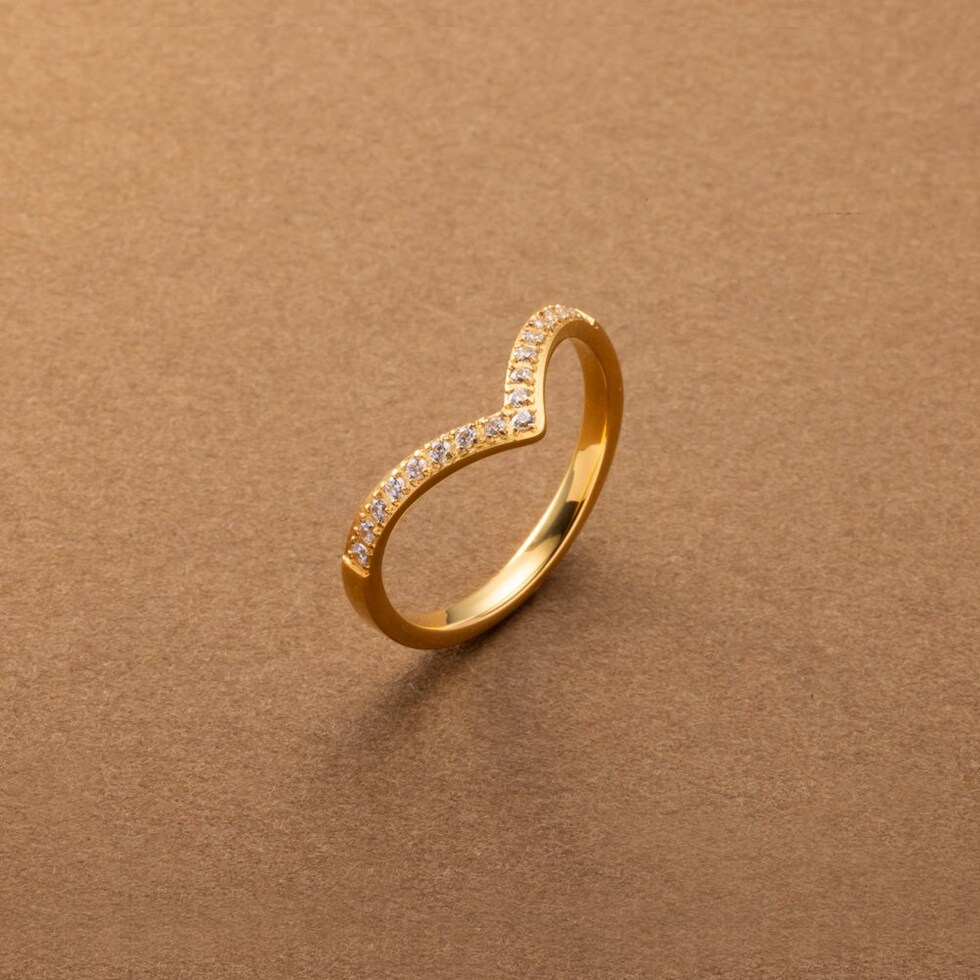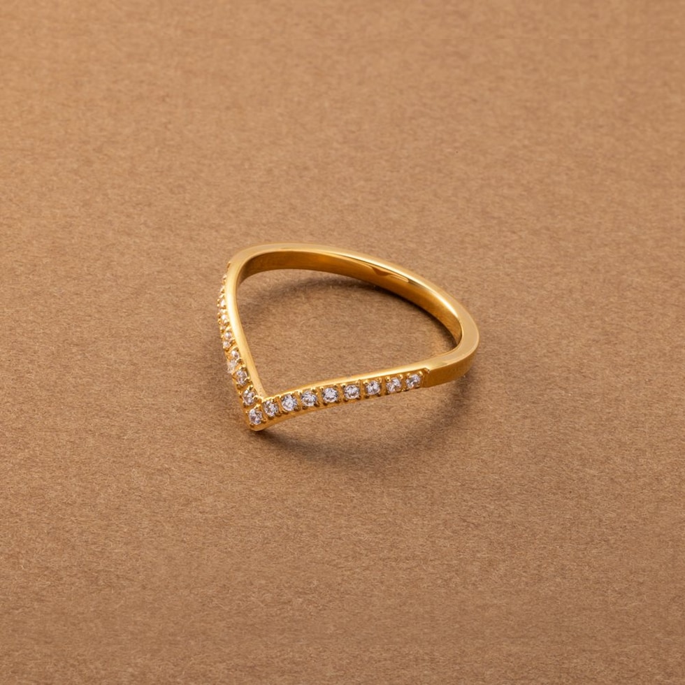隠れハートのステンレス製V字リング。身に着けるとシャープなV字リングだけど外して見るとハートが隠れてる女心射止める洗練デザイン。V字ラインに埋め込んだ繊細なジルコニアがキラキラと煌めく手元を演出。大切な方への贈り物にはこれ一択。