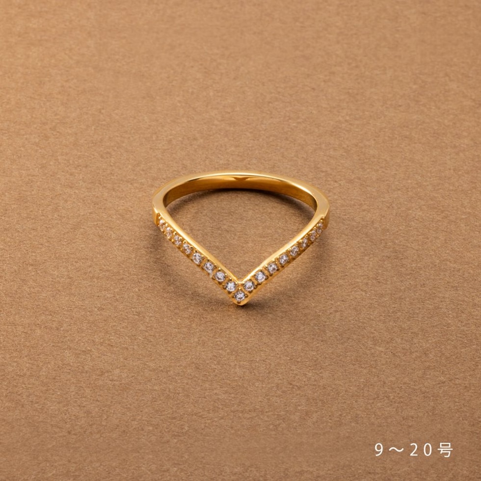 リング 指輪 ステンレス 金属アレルギー サージカルステンレス レディース つけっぱなし V字 ビジュー ライン ハート cream dot ゆうパケット [ゴールド_9号]