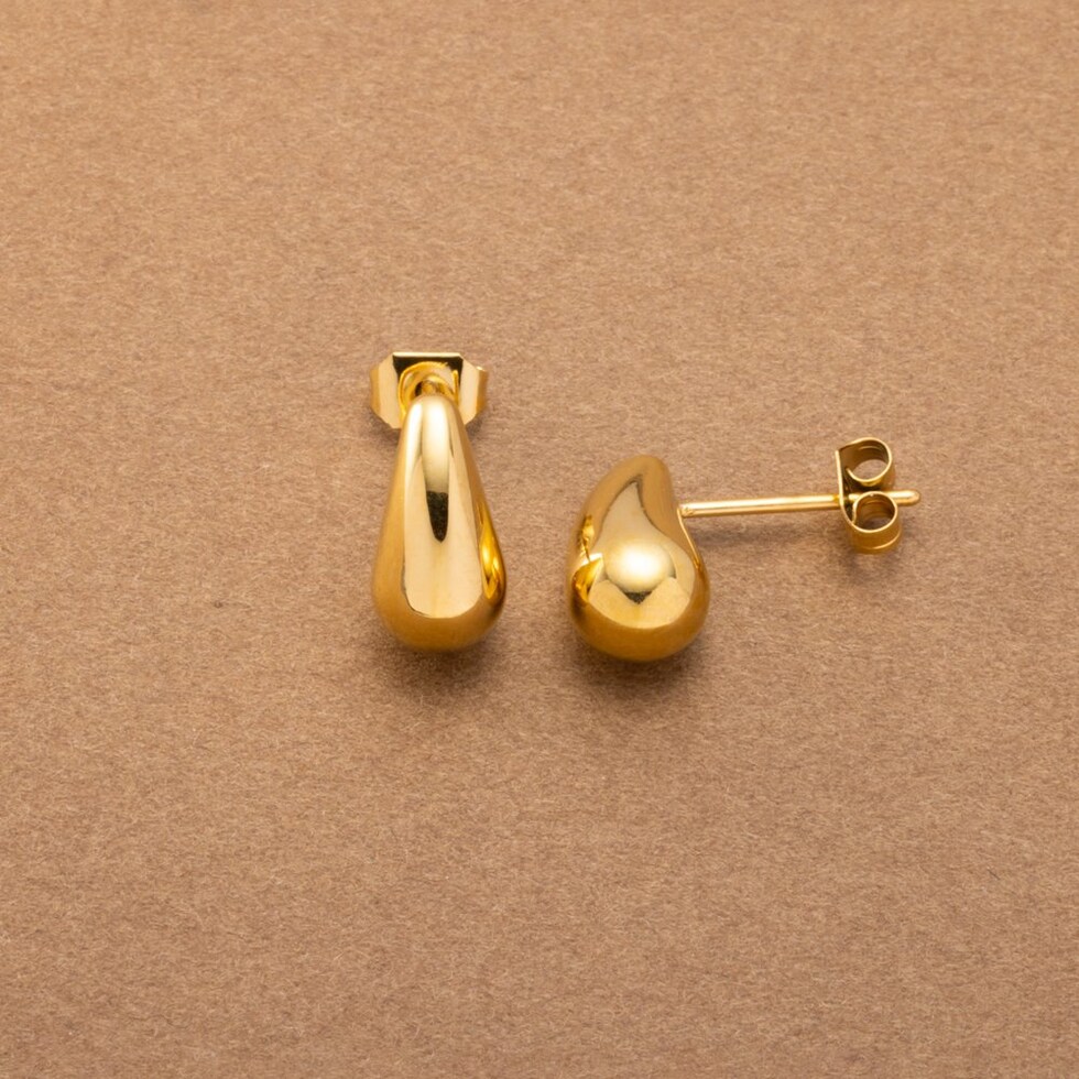 全体がぷっくりとしたしずくモチーフが印象的なスタッドピアス。艶やかな質感と煌めきが大人っぽく洗練された顔周りを演出します。どんなコーデにもに取り入れやすい程よいサイズ感も◎錆びにくく傷に強いステンレス製で、長時間の着用も安心の低アレルギー素材です。