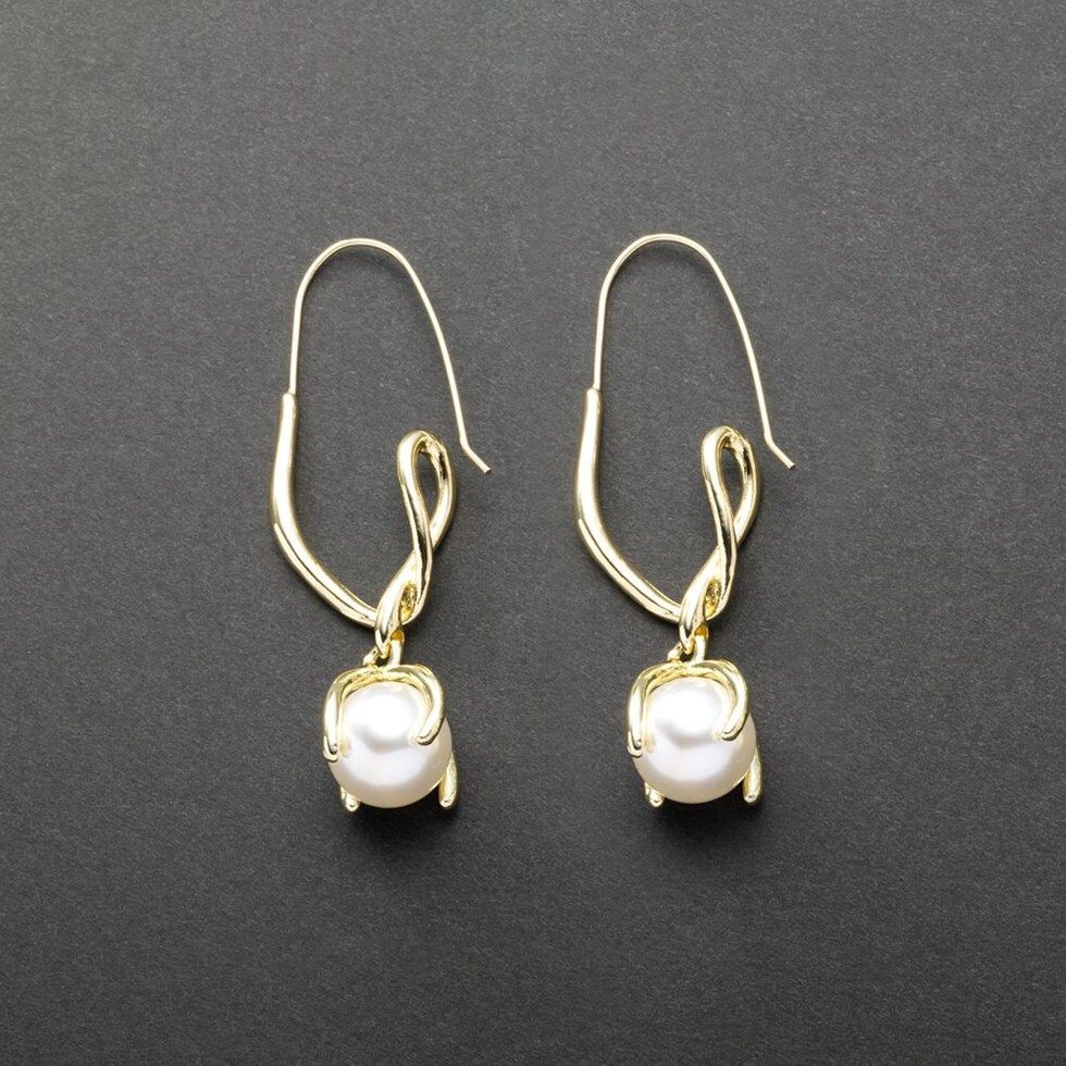 ピアス レディース フック パール 一粒 ビッグパール 大粒 メタル 変形 存在感 揺れる 大きめ 大ぶり cream dot ゆうパケット [ゴールド_ピアス]