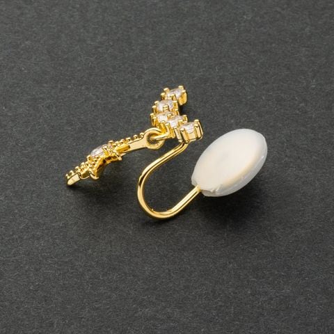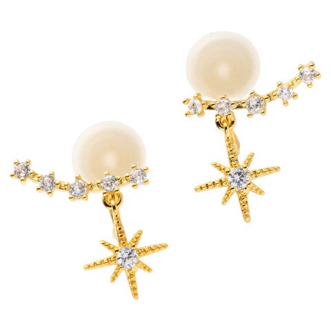 イヤリング レディース スター ビジュー バー カーブ 揺れる シリコンカバー クリップ式 キュービックジルコニア cream dot ゆうパケット [ゴールド_イヤリング]