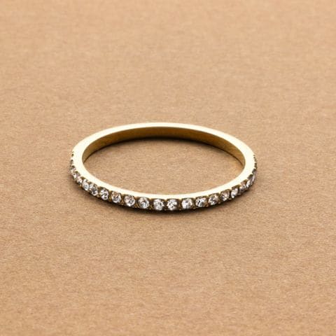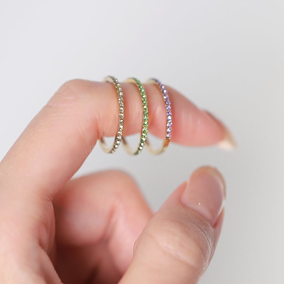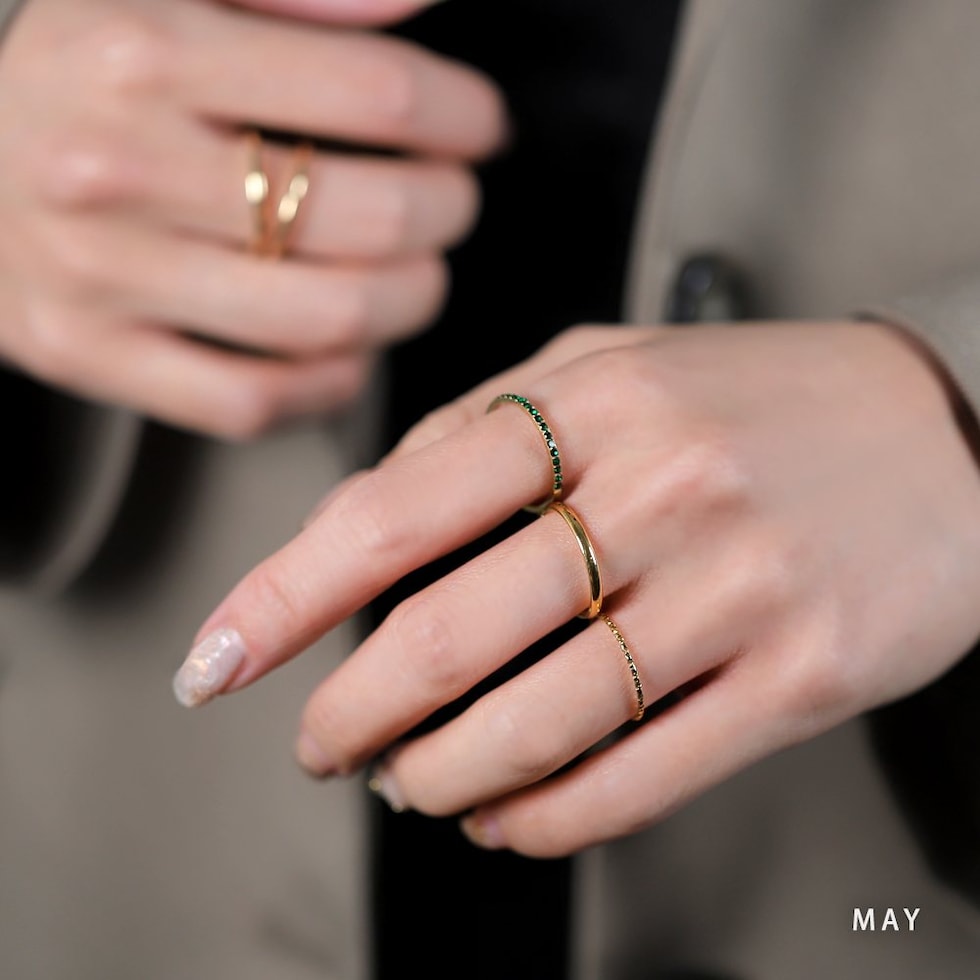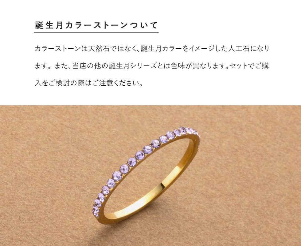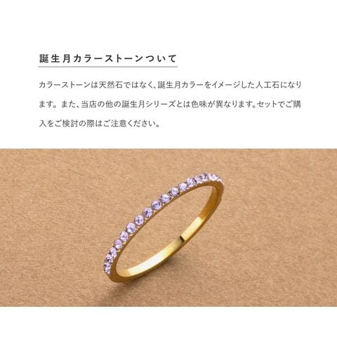 並んだカラービジューがリッチで上品な印象を演出するハーフエタニティリング。誕生月をイメージしたビジューが手元にアクセントを添えてくれます。シンプルなデザインと錆びにくく傷に強いステンレス製でデイリーに大活躍。長時間の着用も安心の低アレルギー素材です。