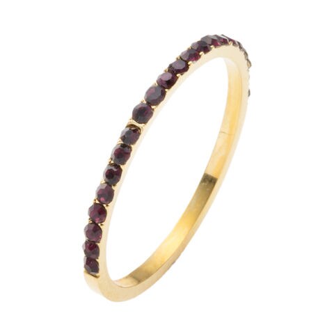 並んだカラービジューがリッチで上品な印象を演出するハーフエタニティリング。誕生月をイメージしたビジューが手元にアクセントを添えてくれます。シンプルなデザインと錆びにくく傷に強いステンレス製でデイリーに大活躍。長時間の着用も安心の低アレルギー素材です。