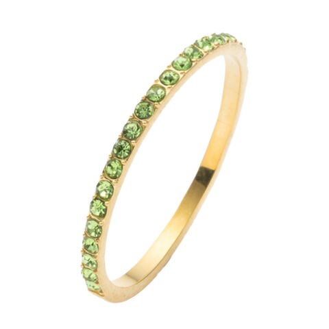 並んだカラービジューがリッチで上品な印象を演出するハーフエタニティリング。誕生月をイメージしたビジューが手元にアクセントを添えてくれます。シンプルなデザインと錆びにくく傷に強いステンレス製でデイリーに大活躍。長時間の着用も安心の低アレルギー素材です。
