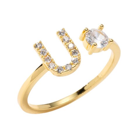 リング 指輪 レディース イニシャル アルファベット ビジュー オープンリング サイズ調整 フリーサイズ キュービックジルコニア cream dot ゆうパケット [U_フリーサイズ]