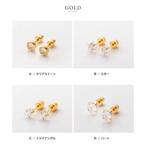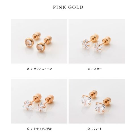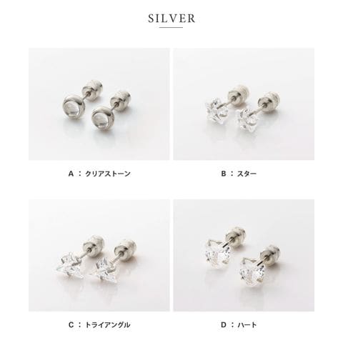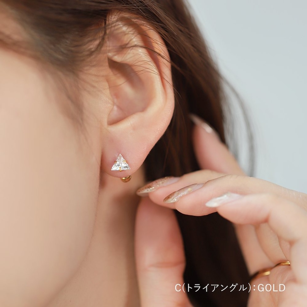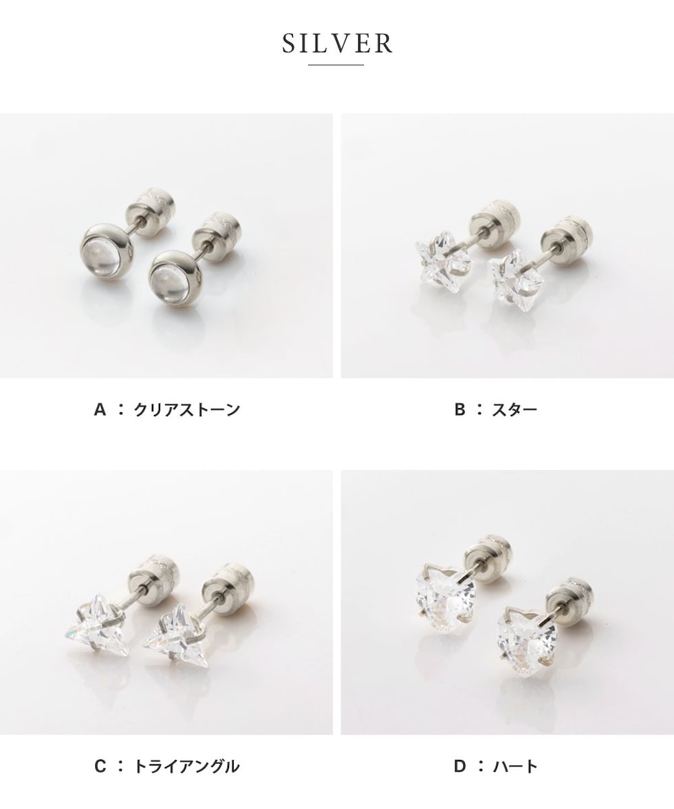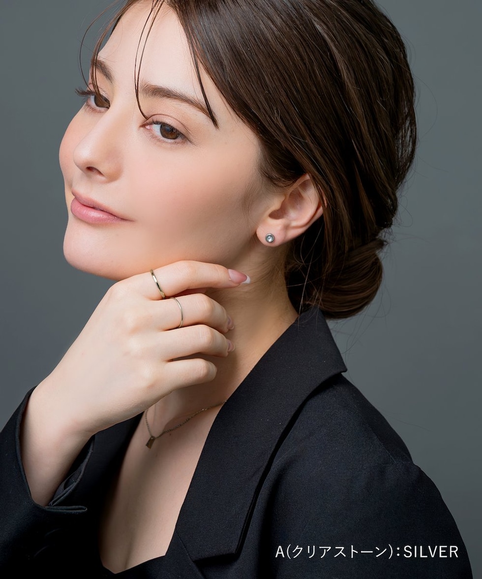 全12タイプから選べるステンレス製ネジロック式ピアス。ネジのようにしっかり留められるキャッチにはビジューも施し、後ろ姿も抜かりなく仕上がります。クリアストーンやスターなどベーシックから遊び心のあるモチーフまで複数買いもオススメ◎