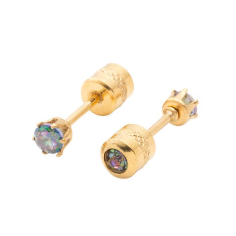 ピアス ステンレス 金属アレルギー サージカルステンレス レディース 88種類 つけっぱなし ネジロック式 円柱型 ビジュー 両耳用 サイズ豊富 cream dot ゆうパケット [オーロラブラック_3mm:ゴールド]