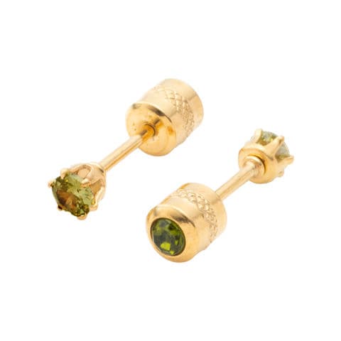 ピアス ステンレス 金属アレルギー サージカルステンレス レディース 88種類 つけっぱなし ネジロック式 円柱型 ビジュー 両耳用 サイズ豊富 cream dot ゆうパケット [ライム_3mm:ゴールド]