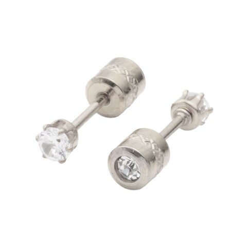 キャッチが落ちないネジロック式のスタッドピアス。3mm~6mmのサイズ、ボディーカラー、ストーンカラーなど幅広く選べる全88展開です。クラウン型の台座でビジューがより一層煌くデザインです。同色のビジューが煌くキャッチで、前後どちらから見ても可愛い◎必ず使えるベーシックなデザインだから、シーンに合わせて複数買いするのもオススメ♪錆びにくく傷に強いステンレス製です。