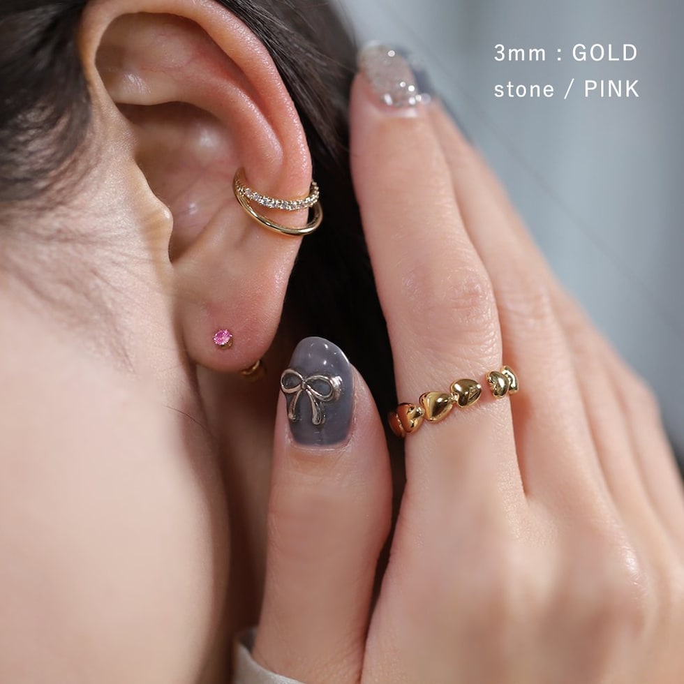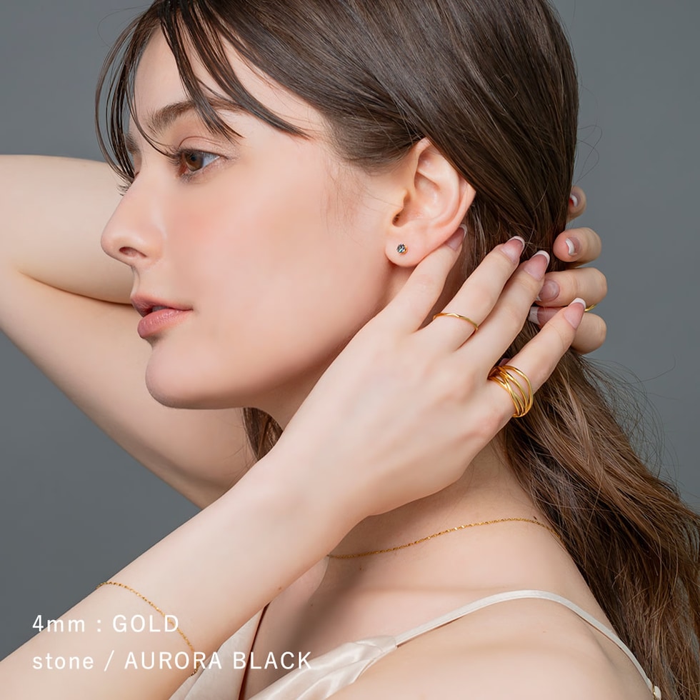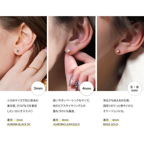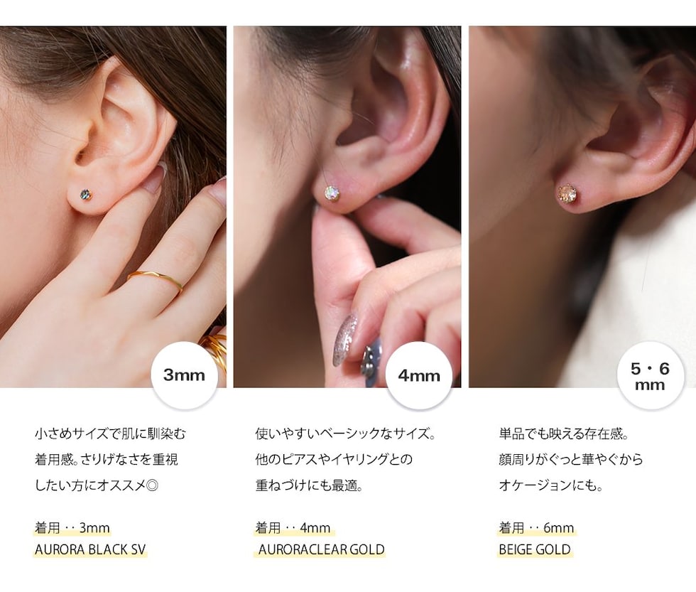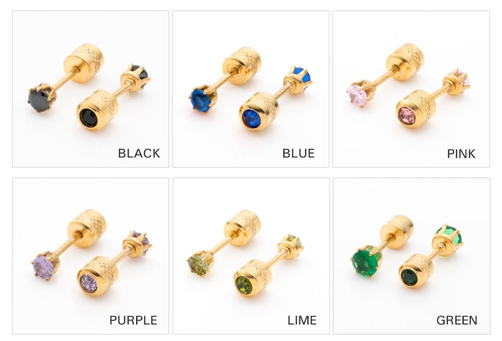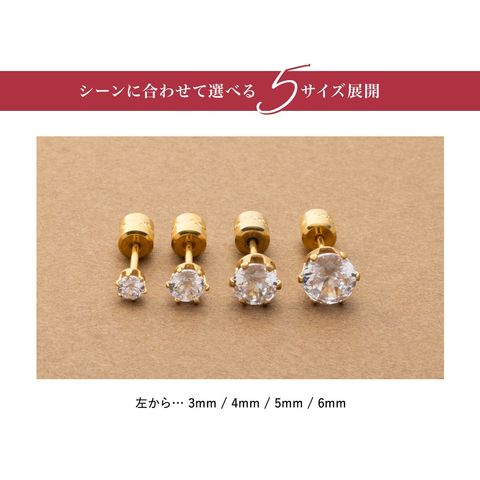 キャッチが落ちないネジロック式のスタッドピアス。3mm~6mmのサイズ、ボディーカラー、ストーンカラーなど幅広く選べる全88展開です。クラウン型の台座でビジューがより一層煌くデザインです。同色のビジューが煌くキャッチで、前後どちらから見ても可愛い◎必ず使えるベーシックなデザインだから、シーンに合わせて複数買いするのもオススメ♪錆びにくく傷に強いステンレス製です。