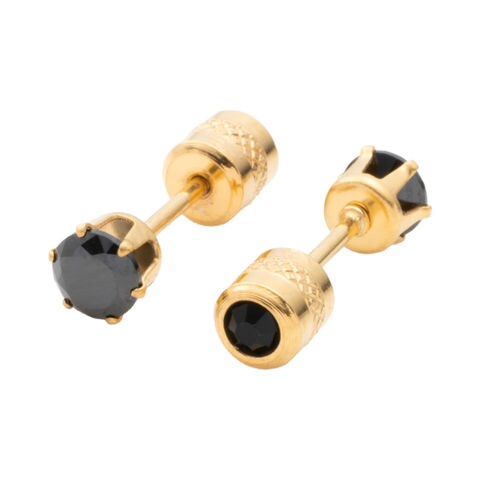 ピアス ステンレス 金属アレルギー サージカルステンレス レディース 88種類 つけっぱなし ネジロック式 円柱型 ビジュー 両耳用 サイズ豊富 cream dot ゆうパケット [ブラック_4mm:ゴールド]