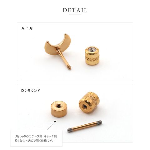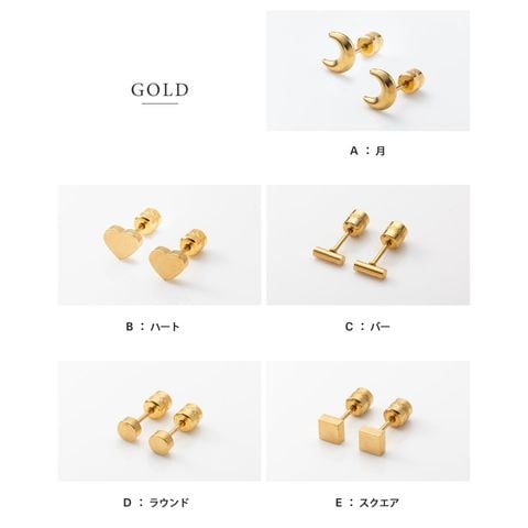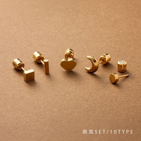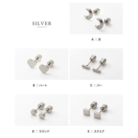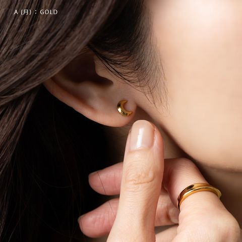 5タイプから選べるステンレス製ネジロック式ピアス。ネジのようにしっかり留められて、見た目すっきり後ろ姿にも抜かりないネジロック式ピアスが人気。艶めくメタルの質感と月やハートのベーシックなモチーフで様々なシーンに使えそう◎